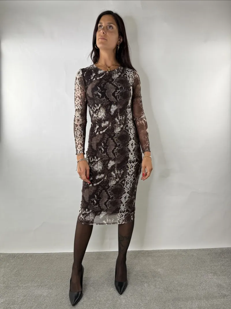 Abito Midi in Tulle, Stampa Animalier Maculata, Semitrasparente con Sottoveste. Taglia unica