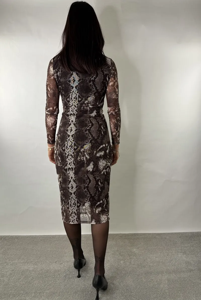 Abito Midi in Tulle, Stampa Animalier Maculata, Semitrasparente con Sottoveste. Taglia unica La modella è alta 170cm e veste la taglia unica