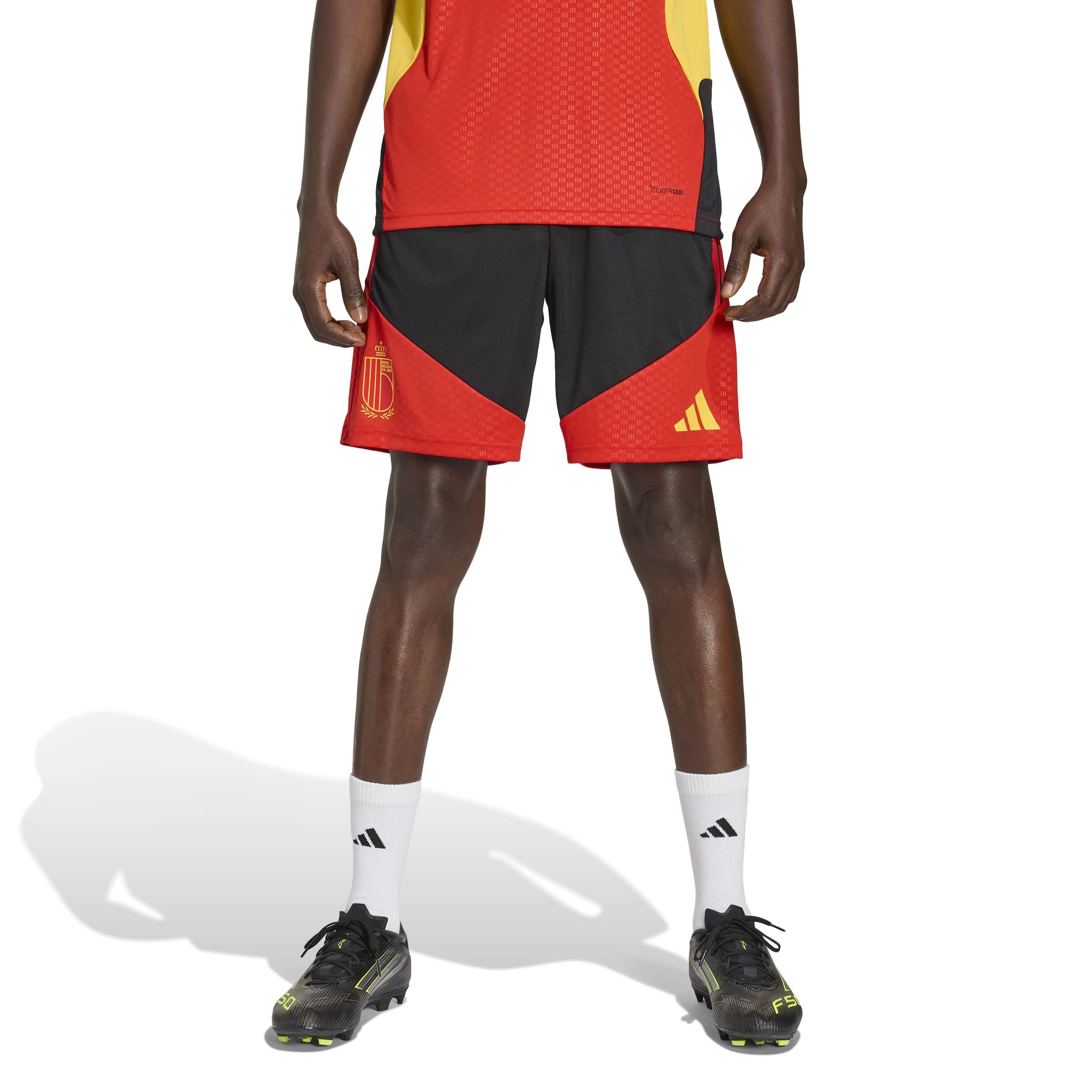 Pantaloncini da calcio del Belgio con tecnologia Climacool per prestazioni fresche e asciutte
