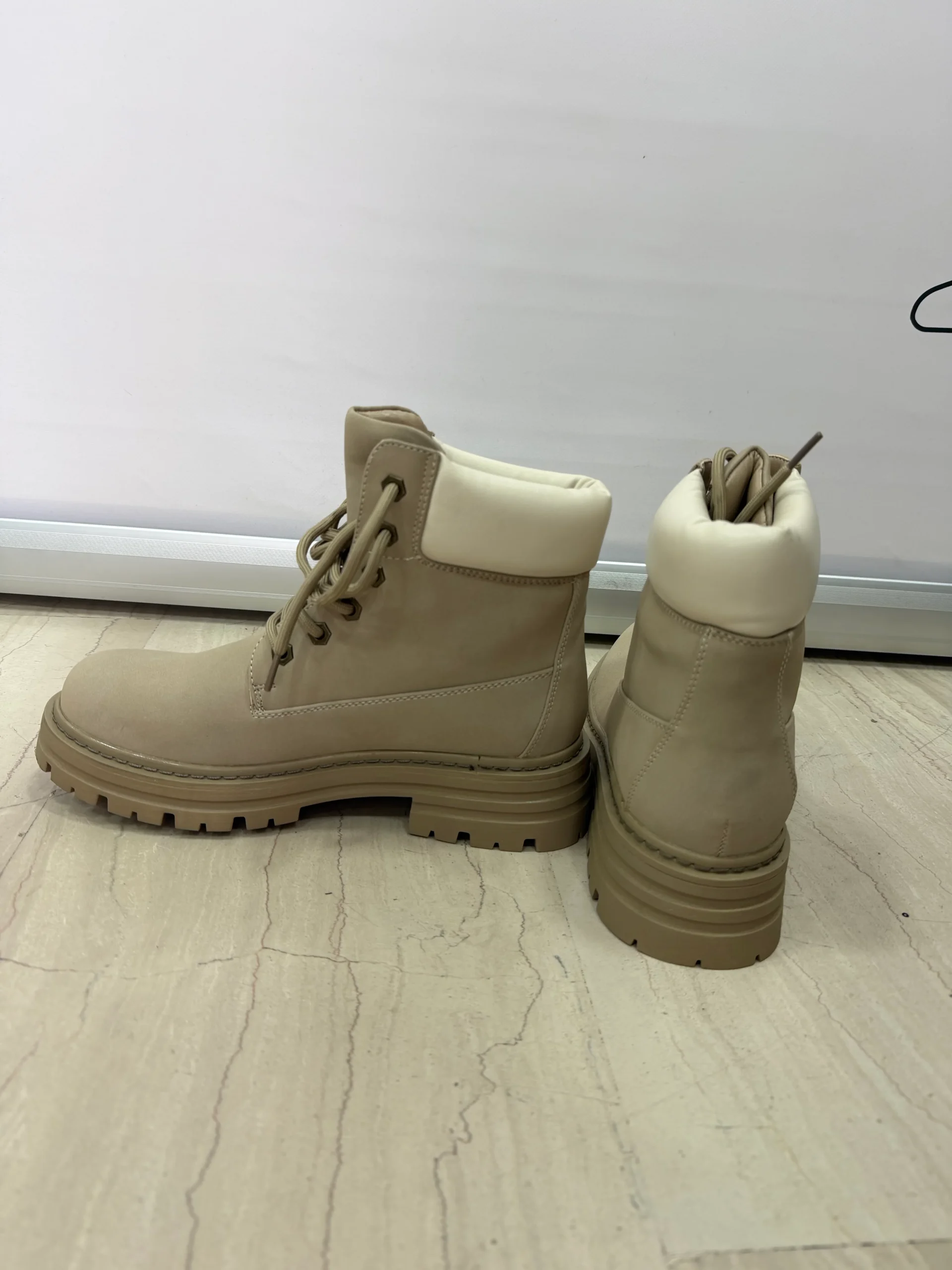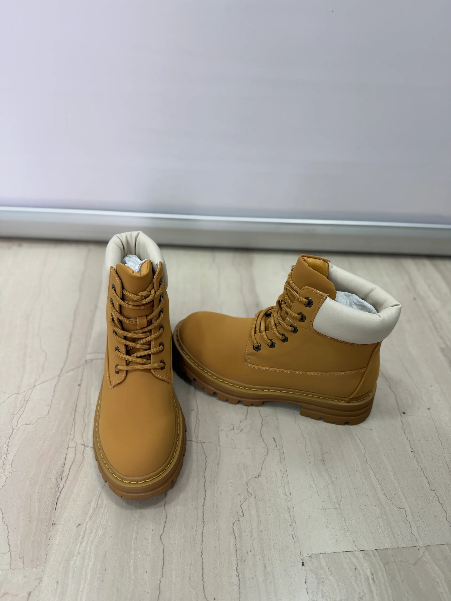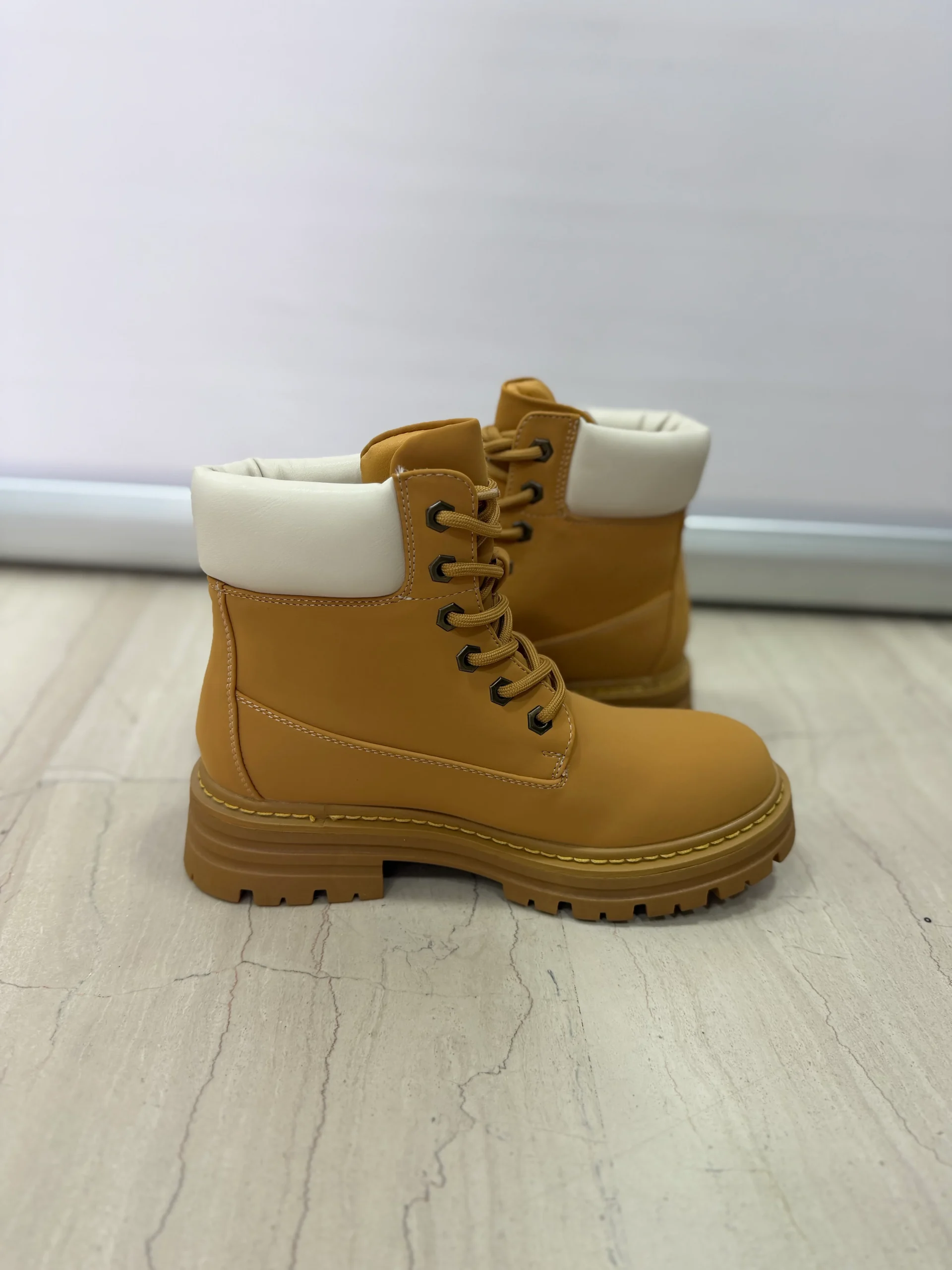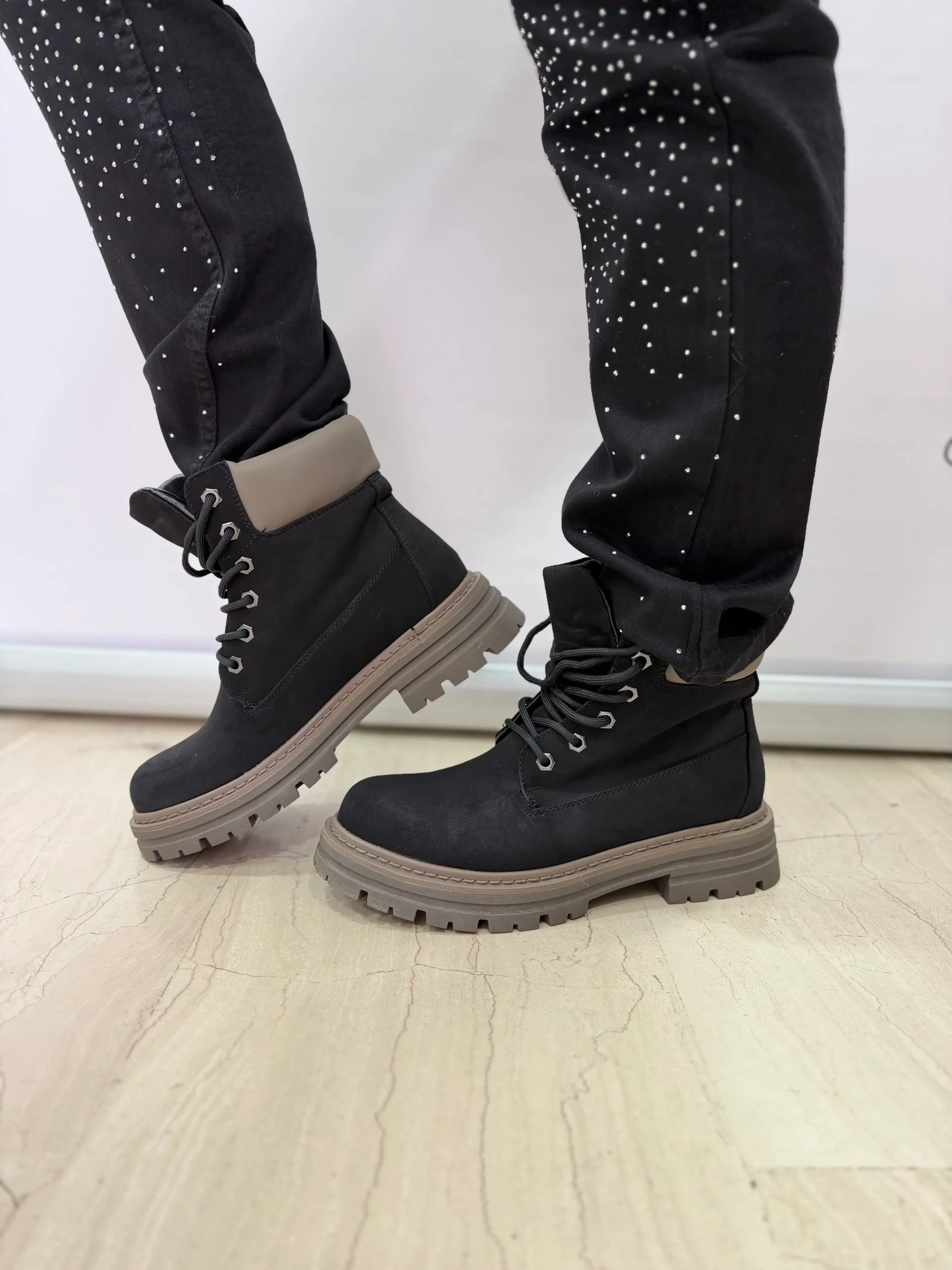 Stivaletti in stile anfibio dal design robusto e contemporaneo, perfetti per completare look casual, urban e streetwear. La tomaia liscia e il bordo imbottito assicurano comfort durante tutta la giornata, mentre la suola alta con grip rinforzato garantisce stabilitร anche su superfici irregolari. Disponibili in tre varianti colore โ beige, cammello e nero โ sono ideali per la stagione autunnale e invernale, offrendo praticitร e stile in ogni occasione.