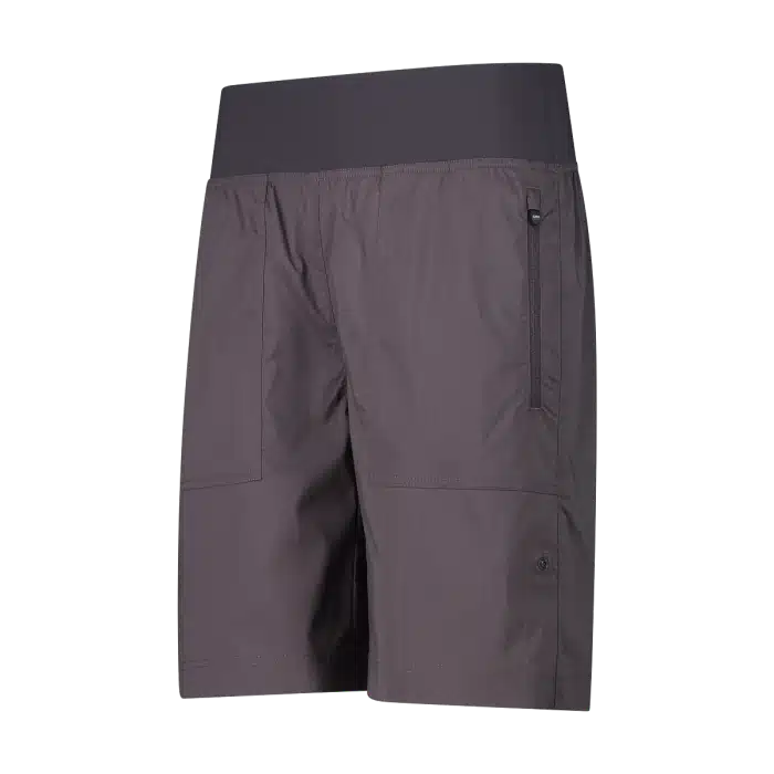 Bermuda in Stretch Jersey Donna CMP Terra Questi bermuda in stretch jersey offrono comfort e versatilitร , perfetti per il tempo libero e le attivitร quotidiane. Il tessuto elasticizzato garantisce una vestibilitร comoda e morbida, mentre la fascia elastica in vita con elastico interno assicura stabilitร e aderenza senza costrizioni. Dotati di tasche con reverse zip camelock, combinano praticitร e sicurezza per riporre i tuoi oggetti personali. Il design regular fit si adatta a diverse occasioni, mentre il fondo gamba con una piccola fettuccia e bottone a pressione consente di risvoltare lโorlo, offrendo un tocco di stile e funzionalitร in piรน.…