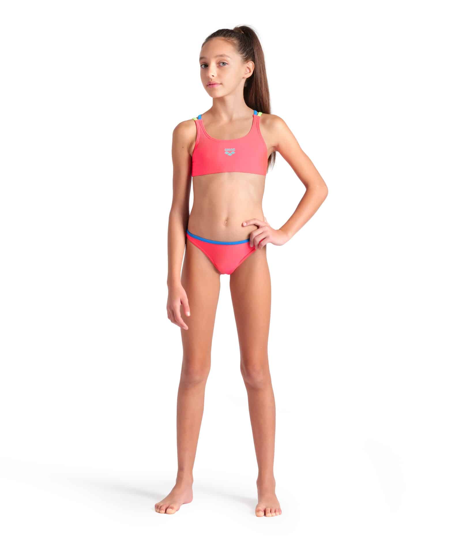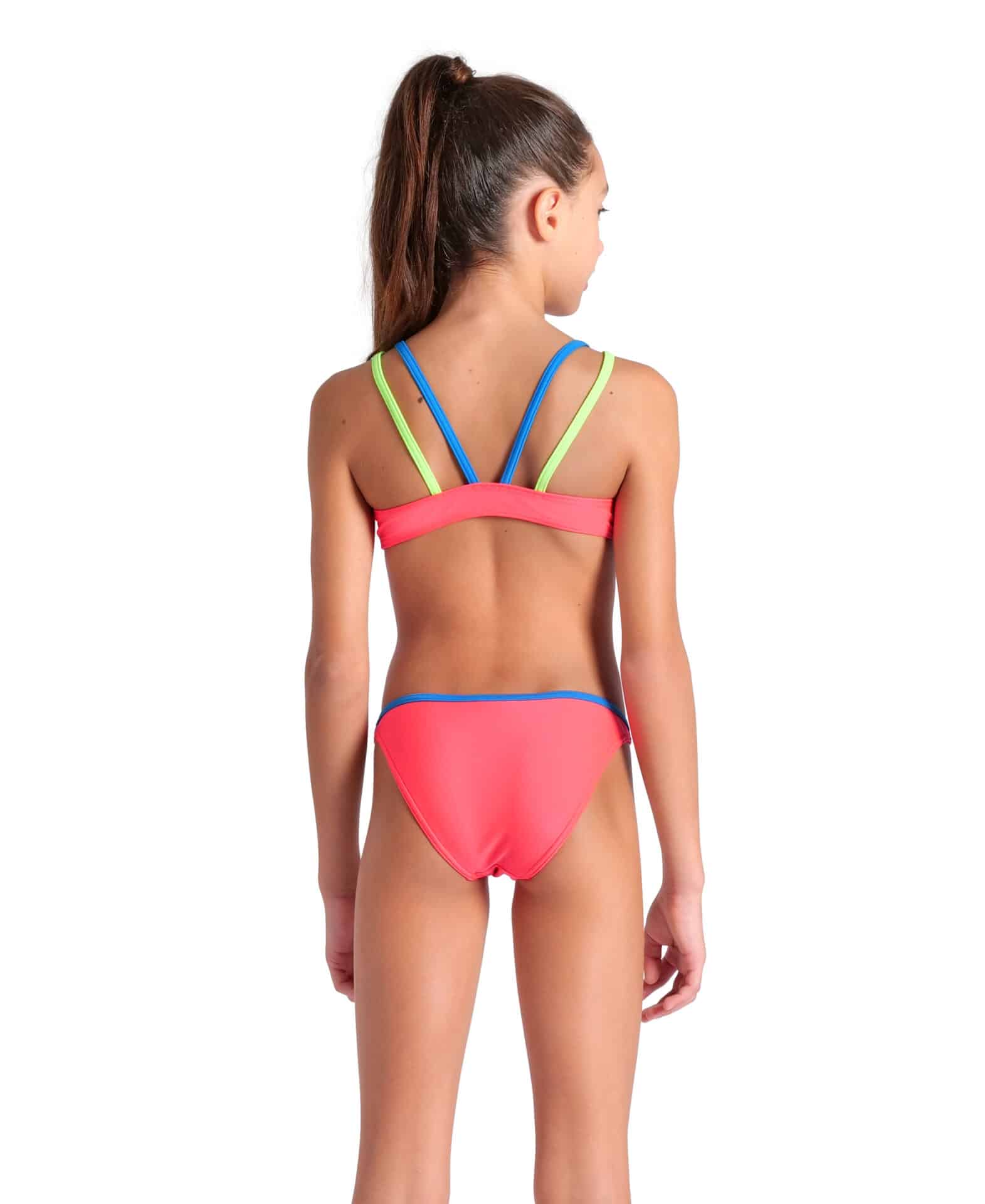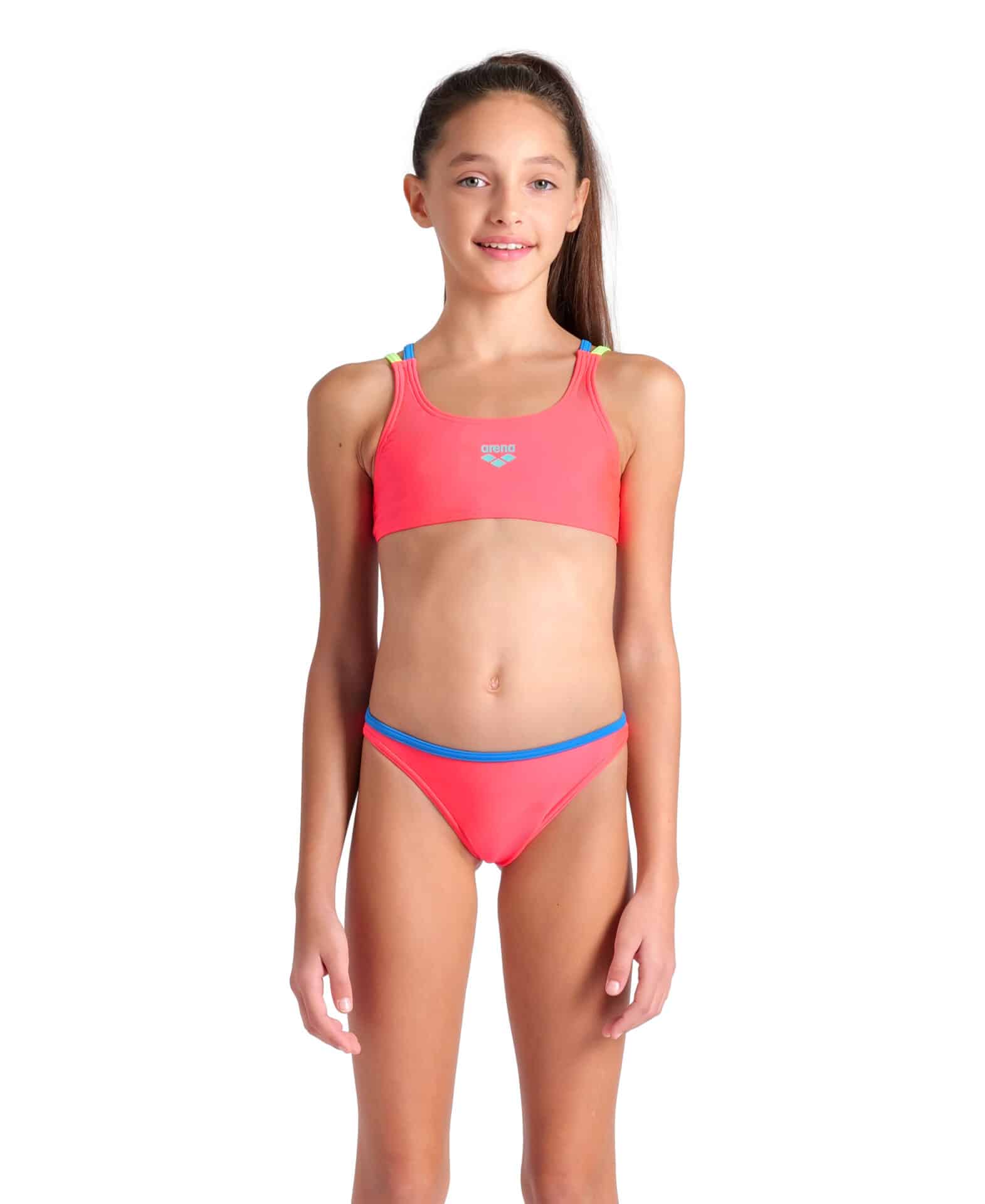 BIKINI SOLID TWO PIECES ARENA bambina Fluo Red Blue
