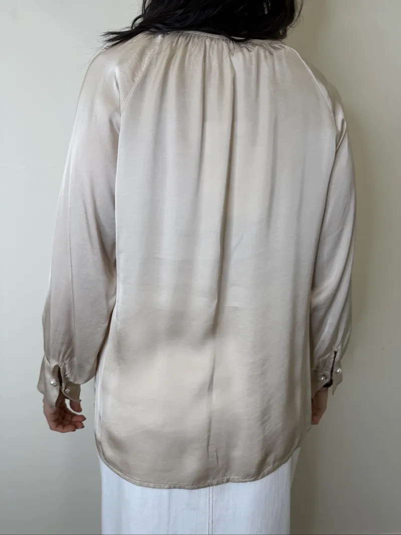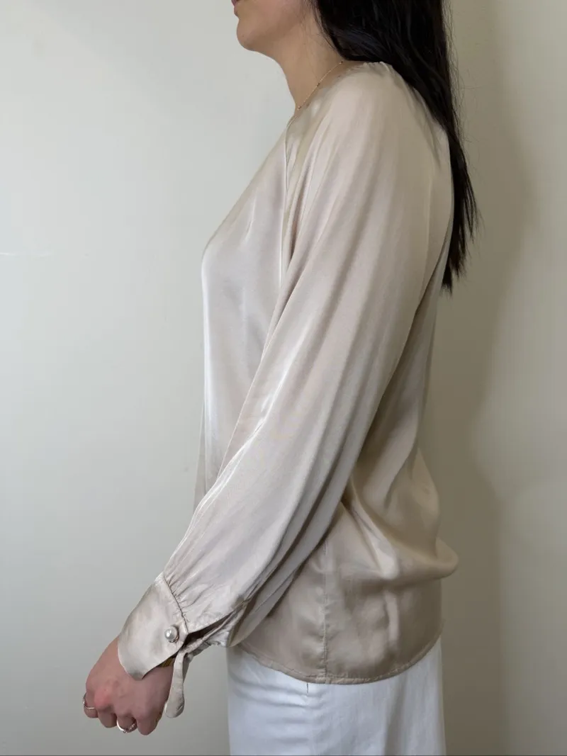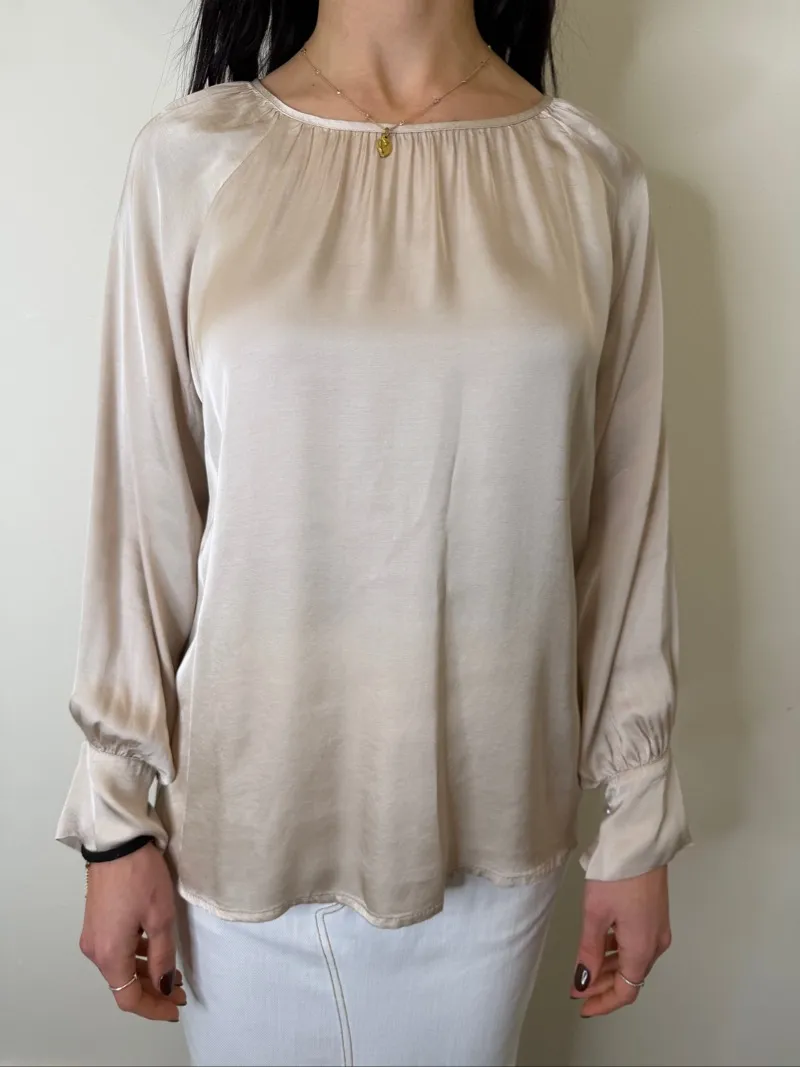 Blusa Girocollo con Polsini in Viscosa Effetto Raso. TU