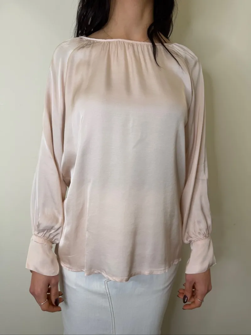 Blusa Girocollo con Polsini in Viscosa Effetto Raso. TU