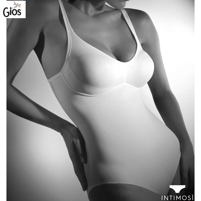 Il body Gios Sabrina è l’intimo ideale per donne e ragazze di classe. Le coppe preformate modellano il seno e valorizzano la silhouette, regalando un comfort eccezionale. Semplice, bello e senza cuciture, il body ha un effetto snellente: slancia la silhouette ed è appositamente intessuto per evitare fastidiosi sfregamenti sulla pelle. Il plus intimo del sostegno laterale assicura una perfetta vestibilità liscia, modellante e contenitiva. grazie al tessuto doppiato sulla pancia e sui fianchi.