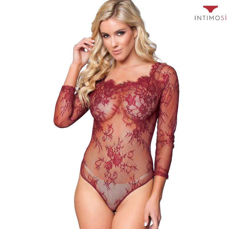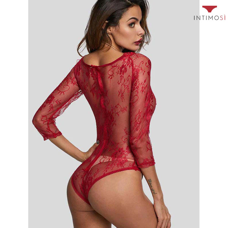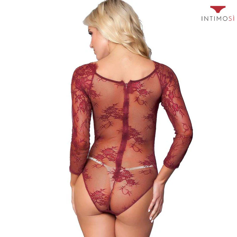 Il body sfoderato di IntimoSì presenta una lavorazione dettagliata con maniche lunghe, perfette per affrontare le notti più rigide. La trasparenza floreale percorre la pelle accendendo l’incarnato di fuoco e passione. La sensualità continua sul retro: la zip avvolge la silhouette percorrendo la schiena del gluteo al collo.