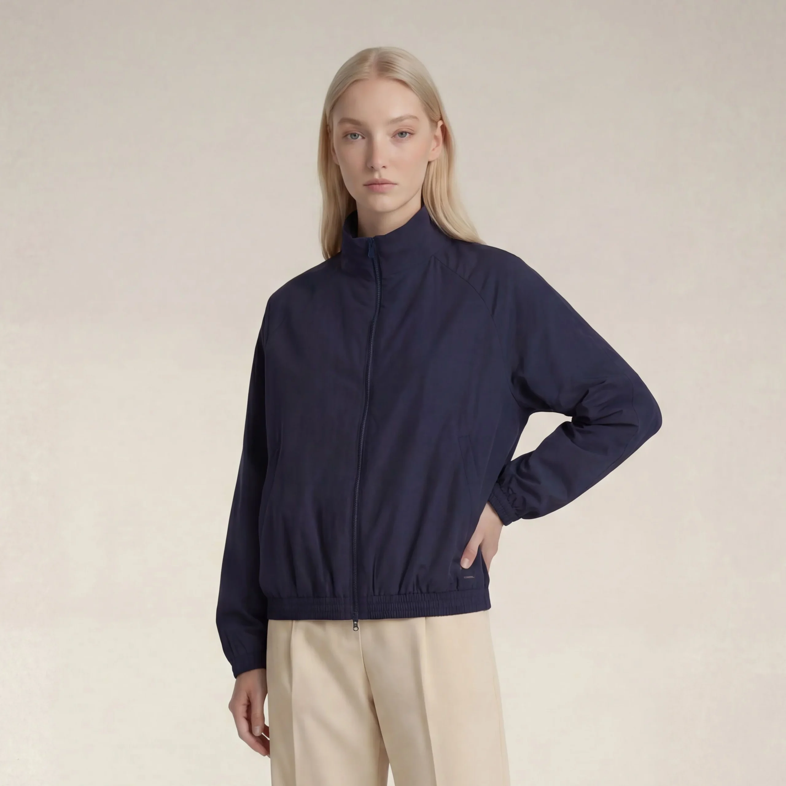Parte della capsule One Minute Wardrobe, il bomber donna modello Wyla – OMW mette la praticità al primo posto per un guardaroba sempre pronto ai cambi di programmi. Le zip a doppio cursore, la banda a contrasto e le finiture elastiche definiscono la silhouette, mentre le tasche con zip tengono ciò che conta a portata di mano. Ultraleggero e facile da abbinare, è il layer da infilare al volo per tutti i piani estivi.