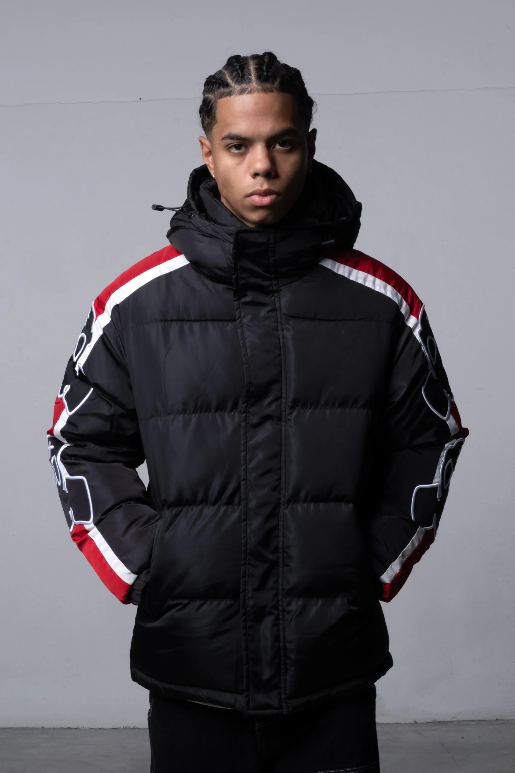 Giubbotto 100% poly, ricamo loghi mask su maniche.