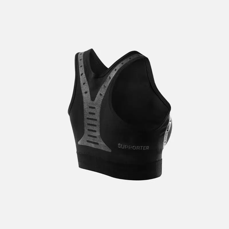 SUPPORTER รจ il primo reggiseno biomeccanico progettato per sostenere il seno e ridurre lโaffaticamento dei muscoli pettorali e della schiena durante lโattivitร fisica e nella vita quotidiana.