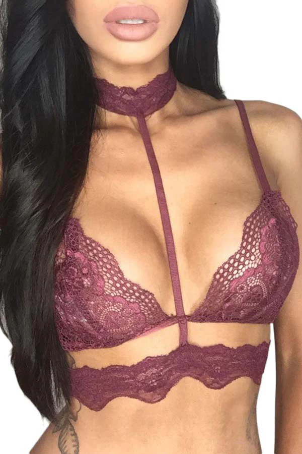 Bralette in pizzo lavorato bustier con collarino