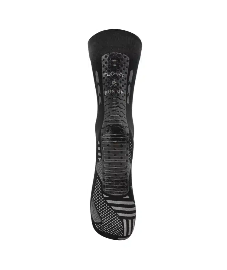 La stampa antiscivolo รจ realizzata appositamente per aumentare lโaderenza alla scarpa, senza far muovere il piede al suo interno, riducendo il rischio di storte e aumentando la propriocezione.