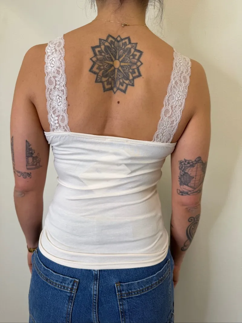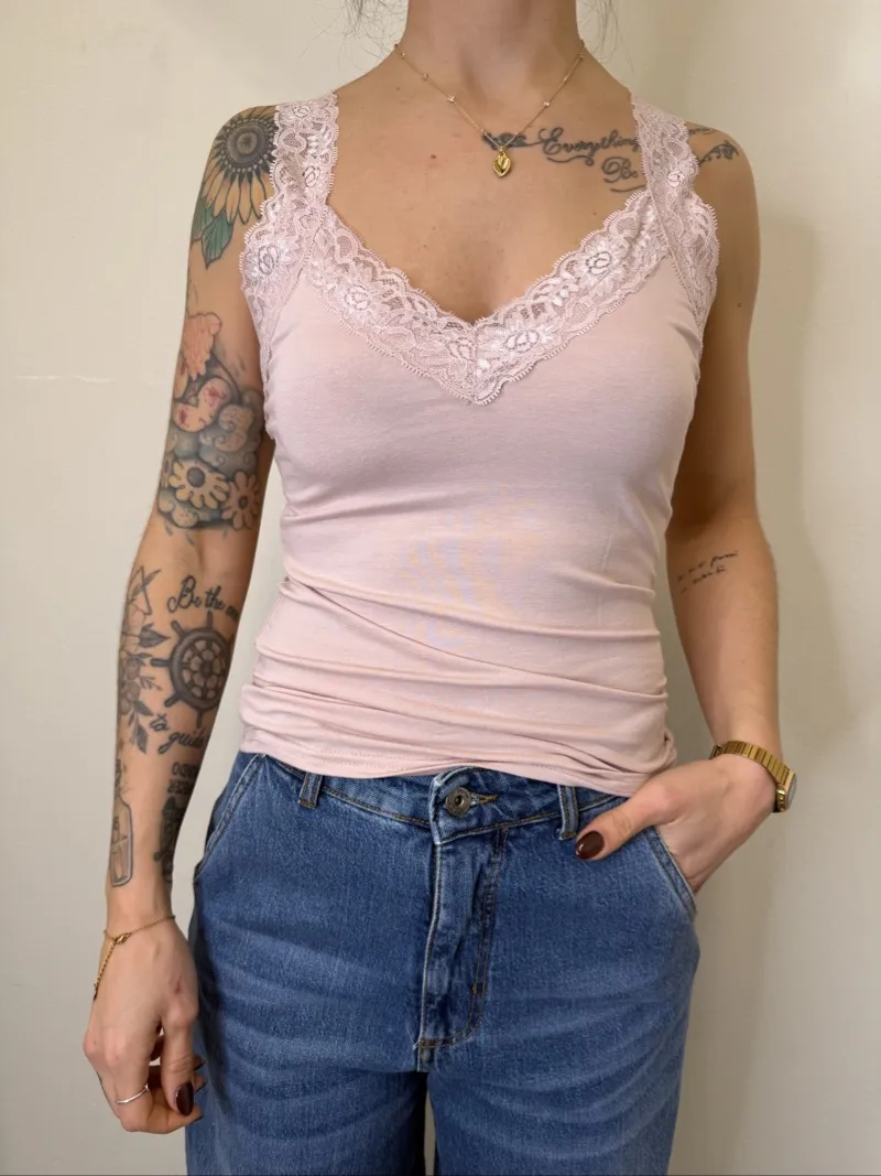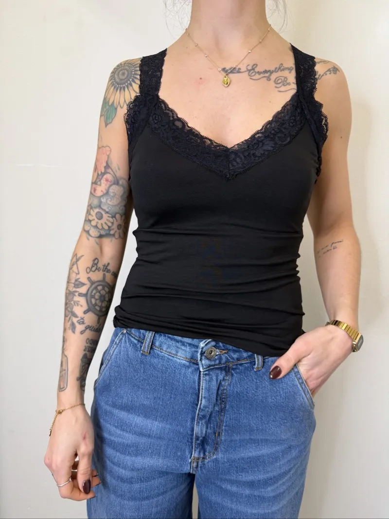 Canotta Elasticizzata Scollo V con Pizzo. TU