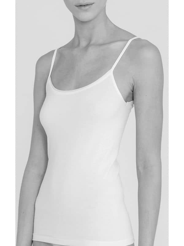 Canotta donna modello con spallina a top in costina cotone e micromodal elasticizzata. Il micromodal conferisce al capo una morbidezza estrema. La qualità e la ricercatezza che non possono mancare nel tuo cassetto dell’intimo.