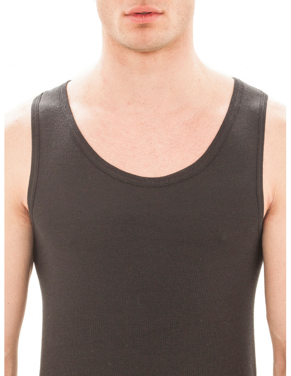 Canottiera spalla larga in pregiata pura lana ultrafine, impalpabile, sottile e naturale.