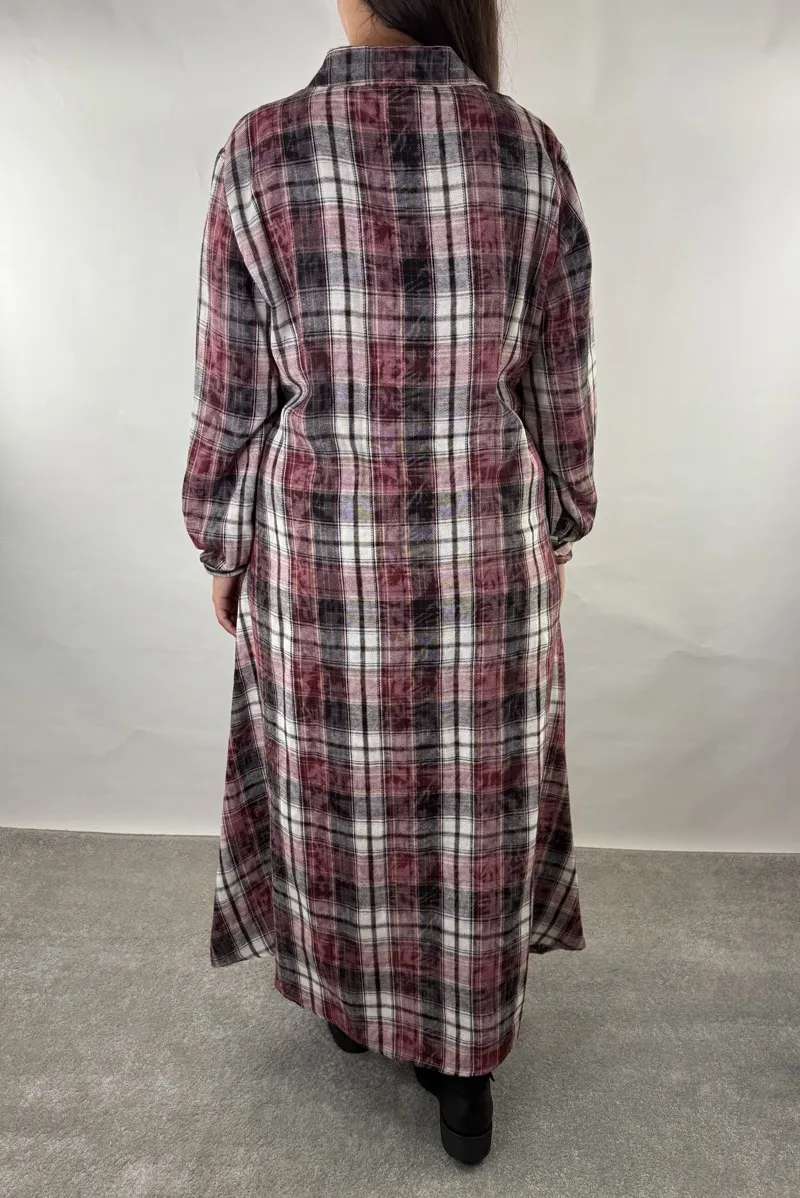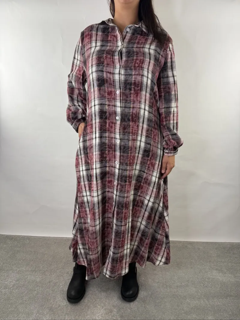 Chemisier Lungo in Fantasia Check Effetto Maltinto