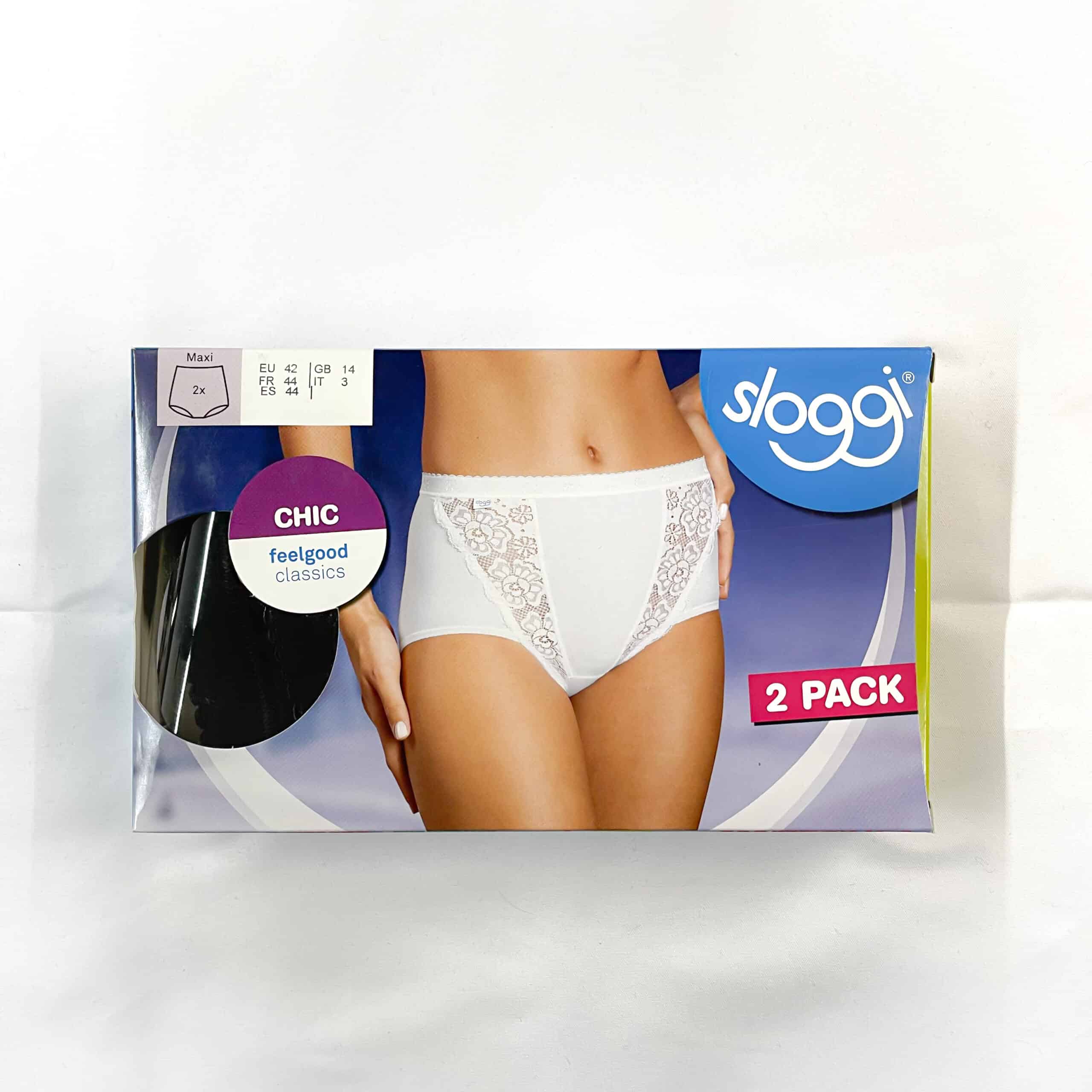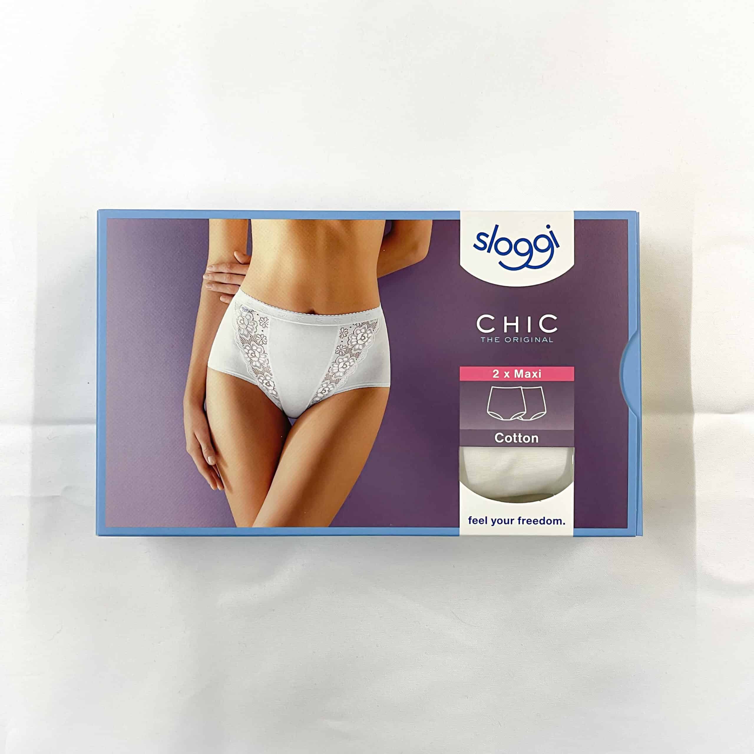 Lo slip Chic Maxi di sloggi è davvero morbido a contatto con la pelle e decorato con inserti in pizzo elasticizzato. -Classica vestibilità con taglio a vita bassa e lati piacevolmente alti. -Morbido elastico modellante in vita, per una perfetta vestibilità. Confezione da 2 slip