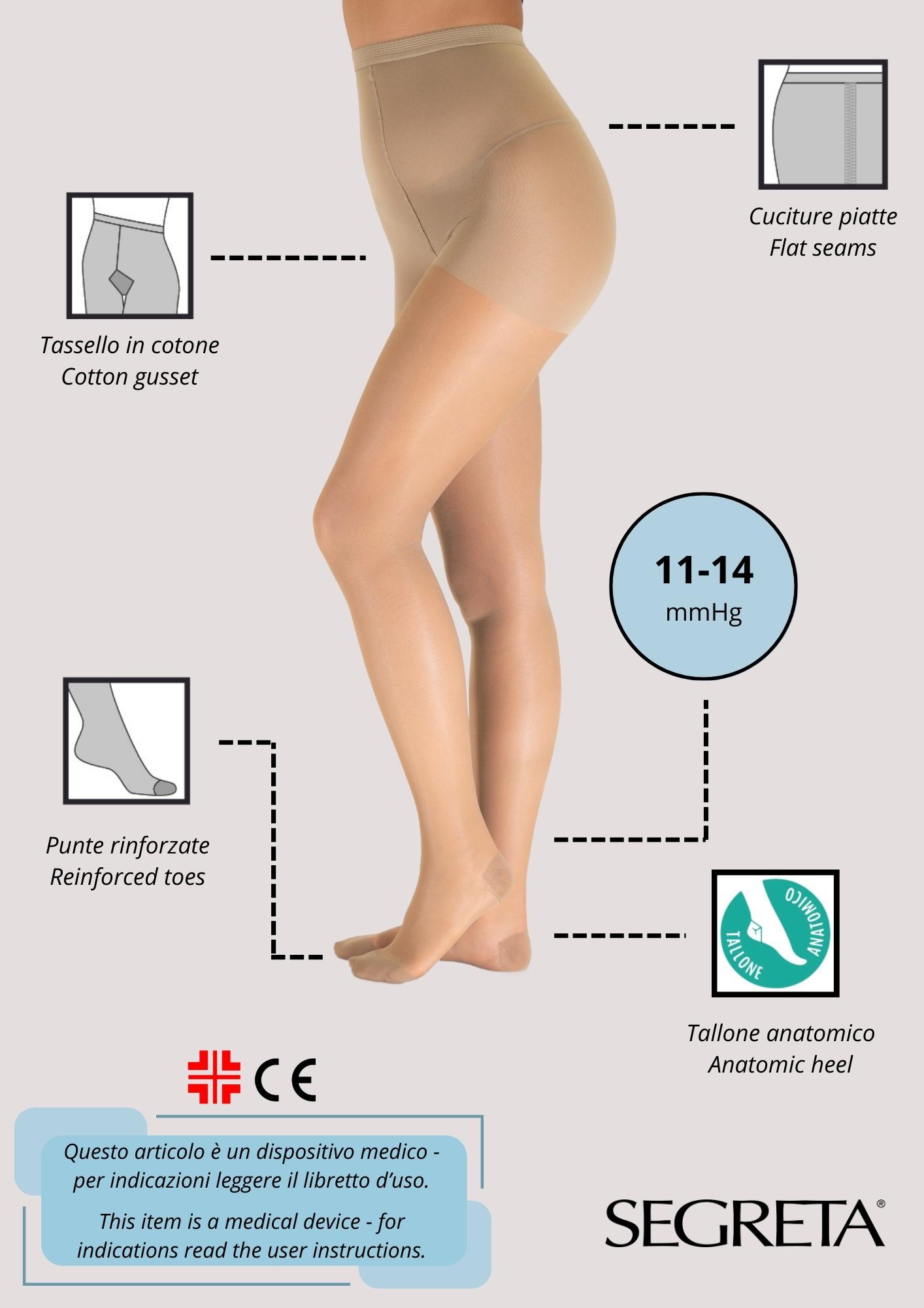70 DEN – Support medio velato Compressione: 11/14 mmHg – 15/19 hPa Composizione : 85% poliammide / 15% elastan