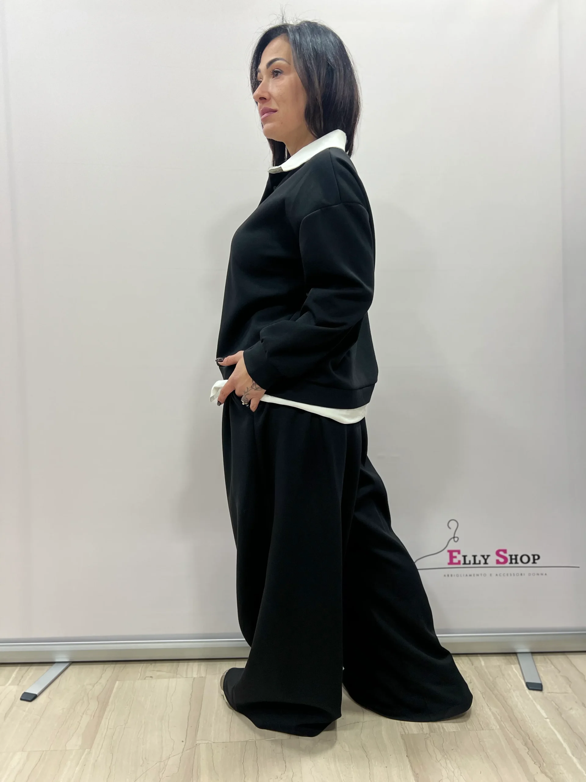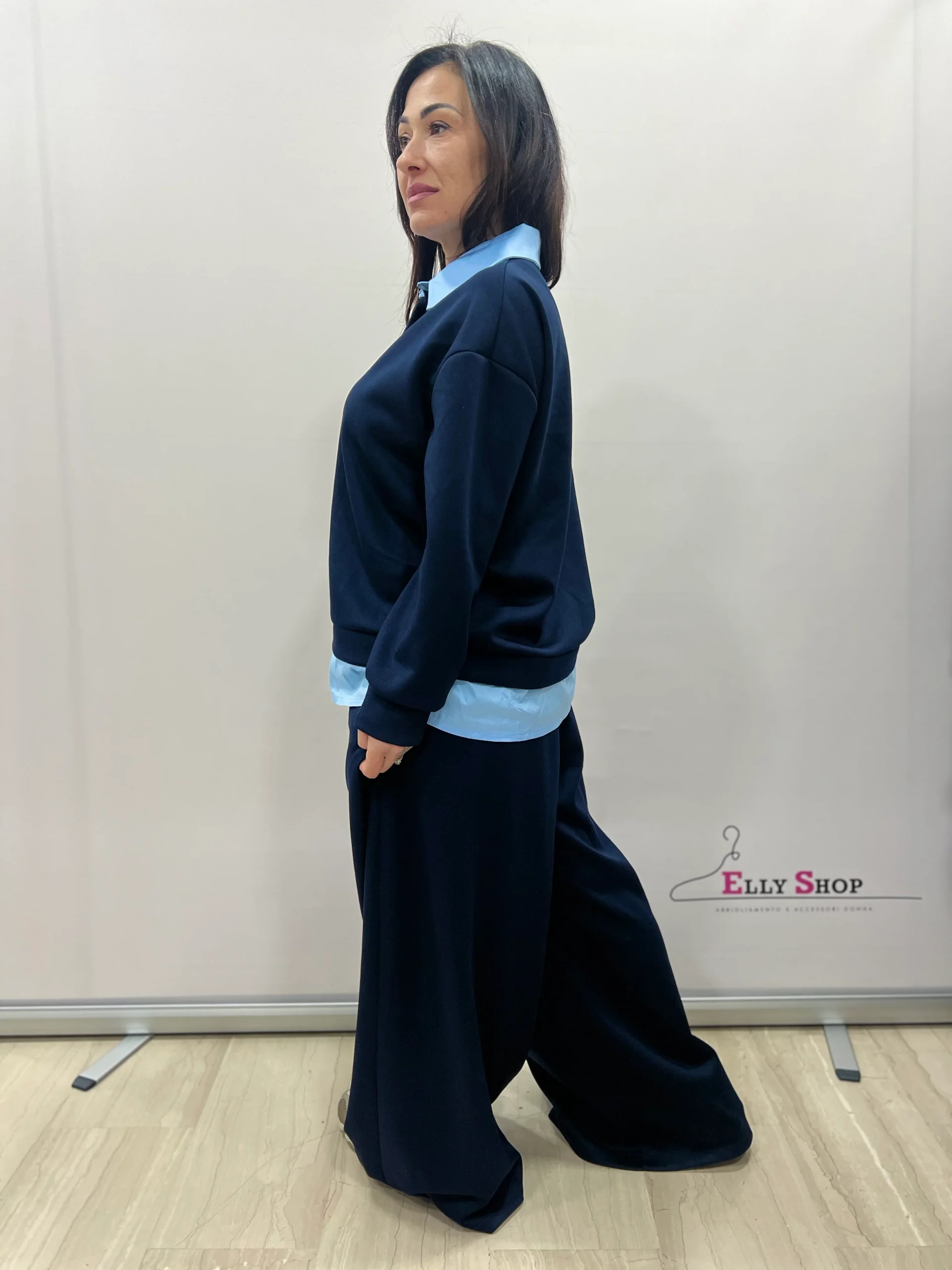Completo Curvy Casual-Chic Completo due pezzi dallo stile casual-chic, pensato per valorizzare le forme con una vestibilità confortevole e moderna. Il design richiama l’effetto camicia sotto la felpa, per un look curato ma rilassato, ideale sia per il tempo libero che per outfit quotidiani raffinati. Il pantalone ampio slancia la figura e garantisce massima comodità. […]