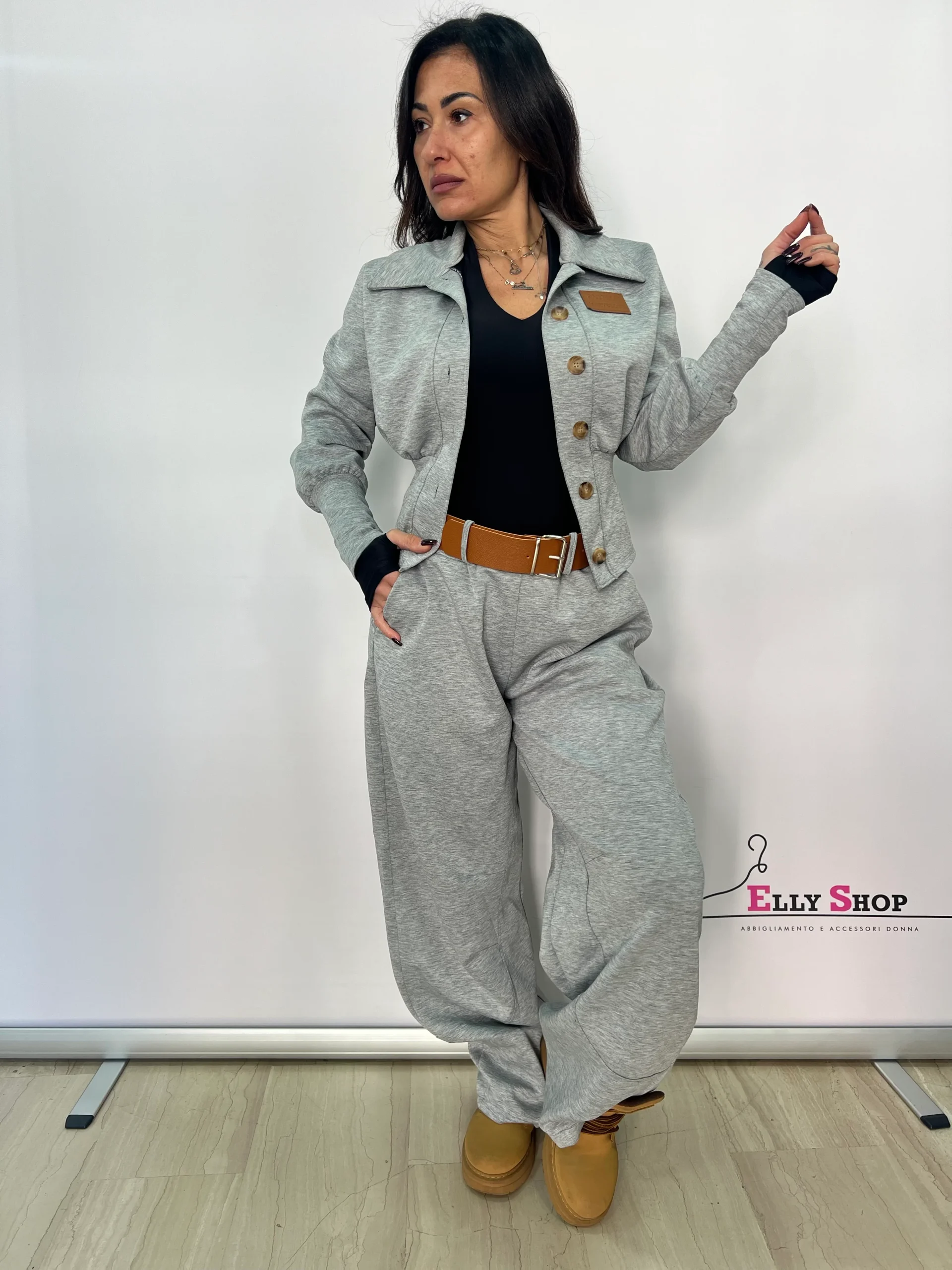 Completo due pezzi da donna dallo stile casual chic, composto da giacca corta e pantalone lungo a gamba morbida. Un outfit versatile e di tendenza, pensato per valorizzare la silhouette mantenendo una vestibilità comoda e rilassata. Perfetto per il tempo libero, per look urbani curati o per occasioni informali in cui comfort e stile devono convivere. Disponibile in più varianti colore, si adatta facilmente a diverse stagioni e abbinamenti.