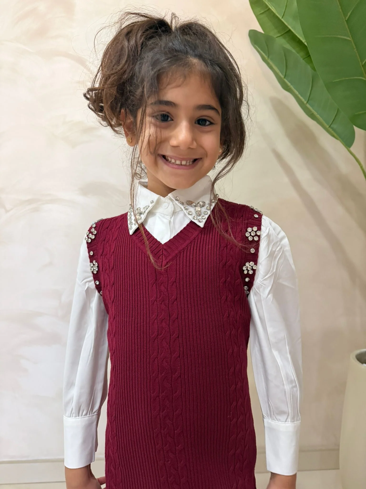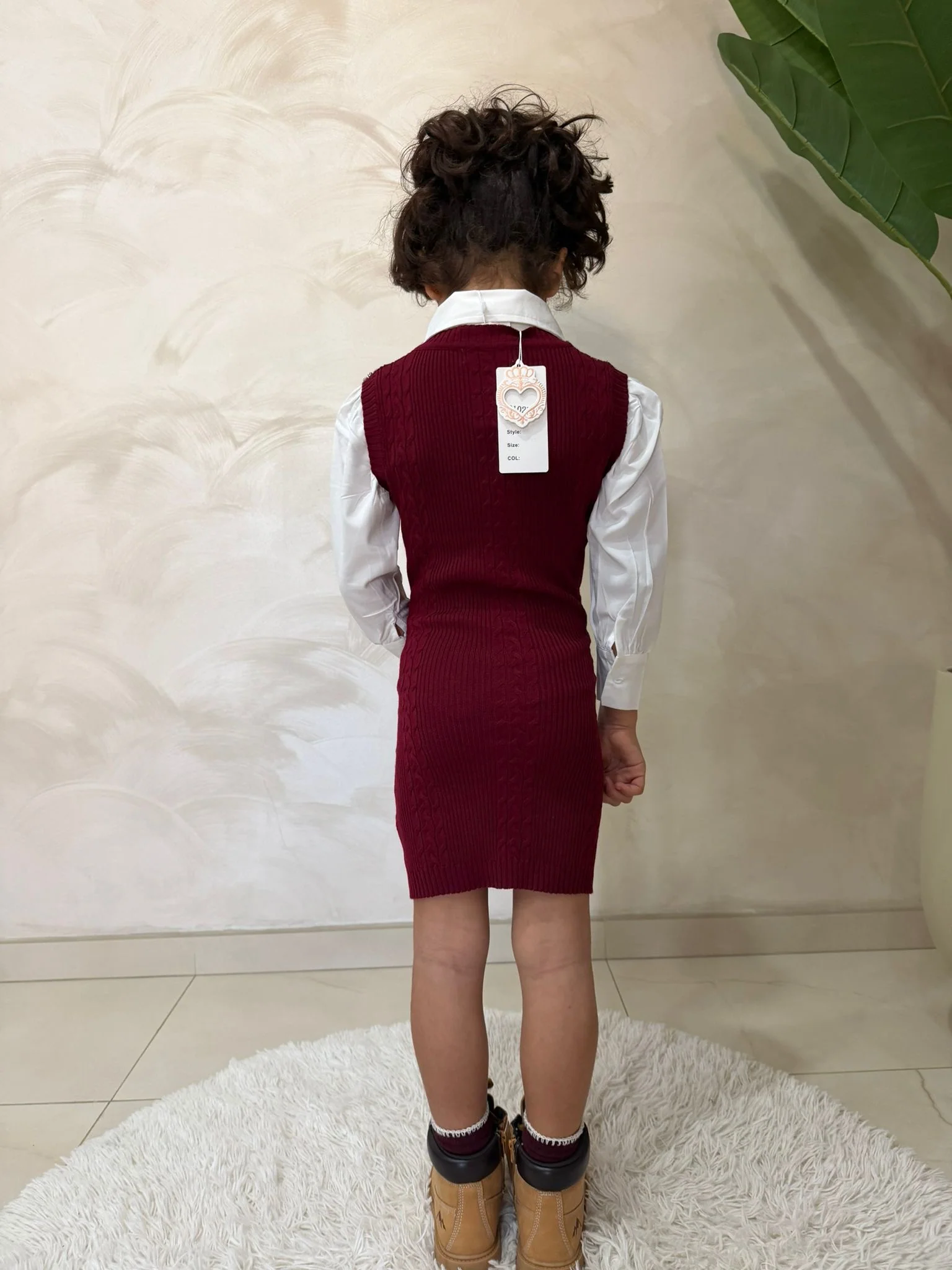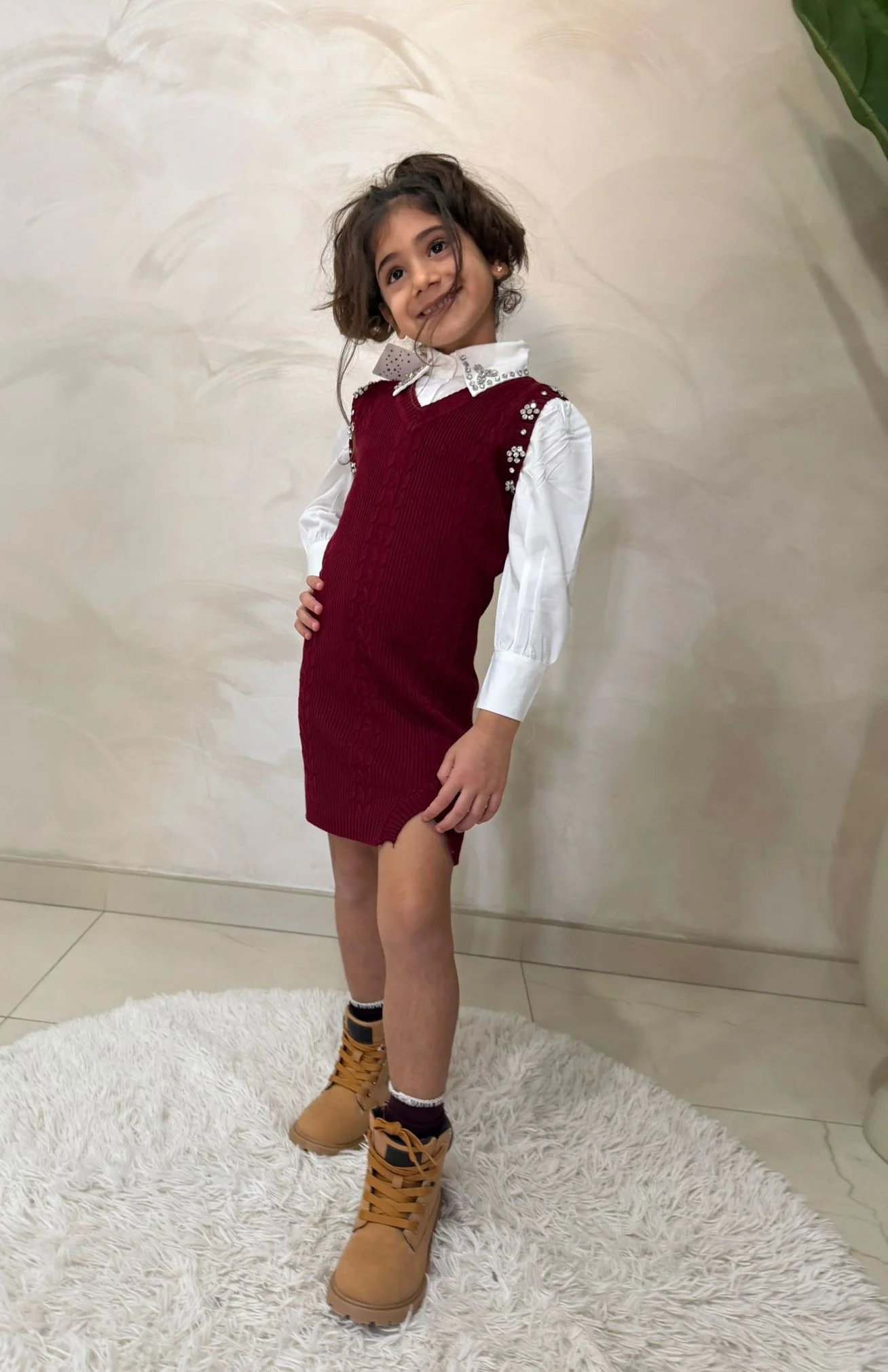Abito con camicia per bambina Un completo elegante e versatile composto da abito senza maniche in maglia e camicia bianca a maniche lunghe, perfetto per occasioni speciali, cerimonie o look raffinati di tutti i giorni. Il design color bordeaux, impreziosito da dettagli decorativi sulle spalle e sul colletto, dona un tocco chic, mentre la vestibilità […]