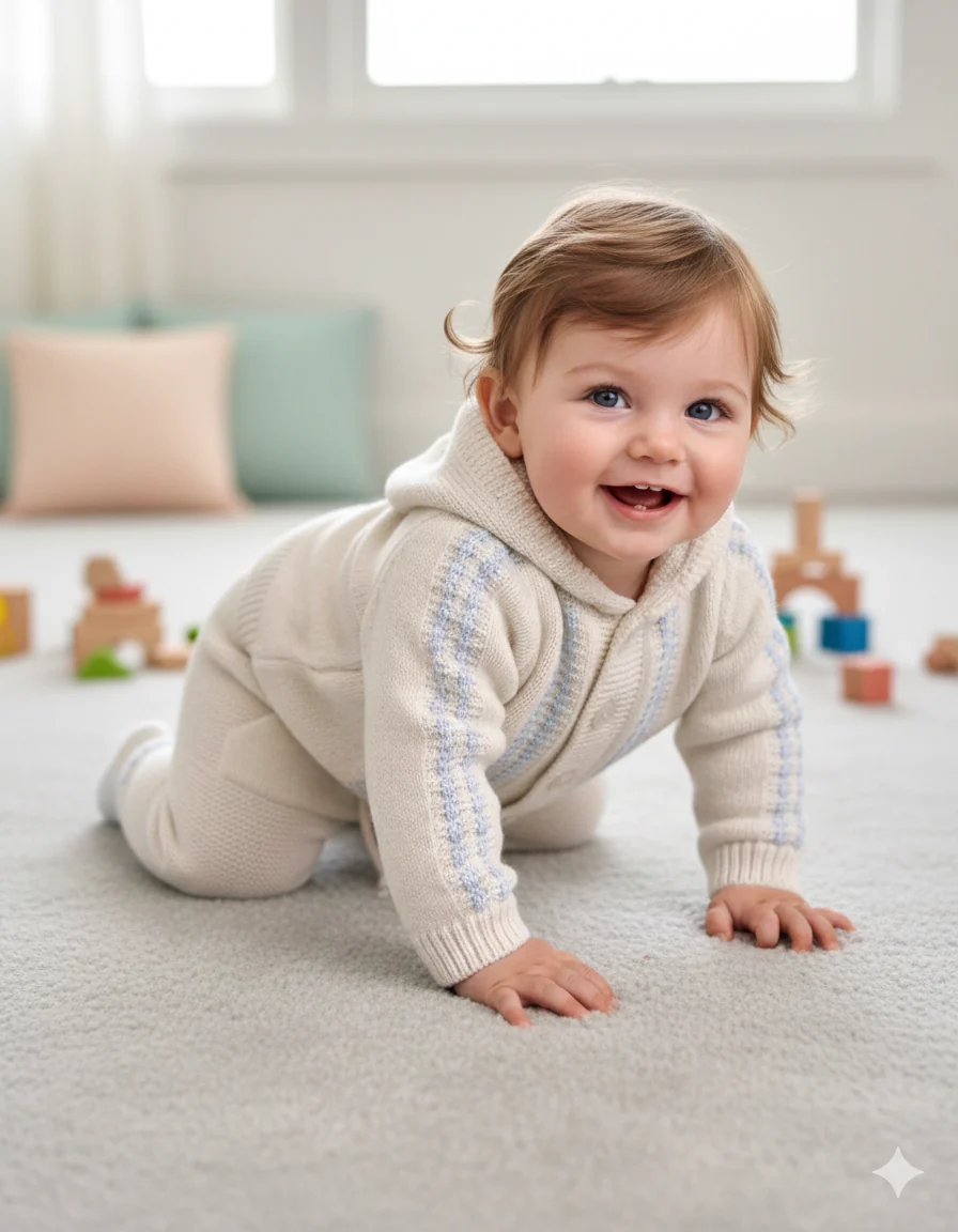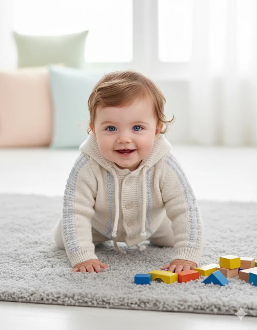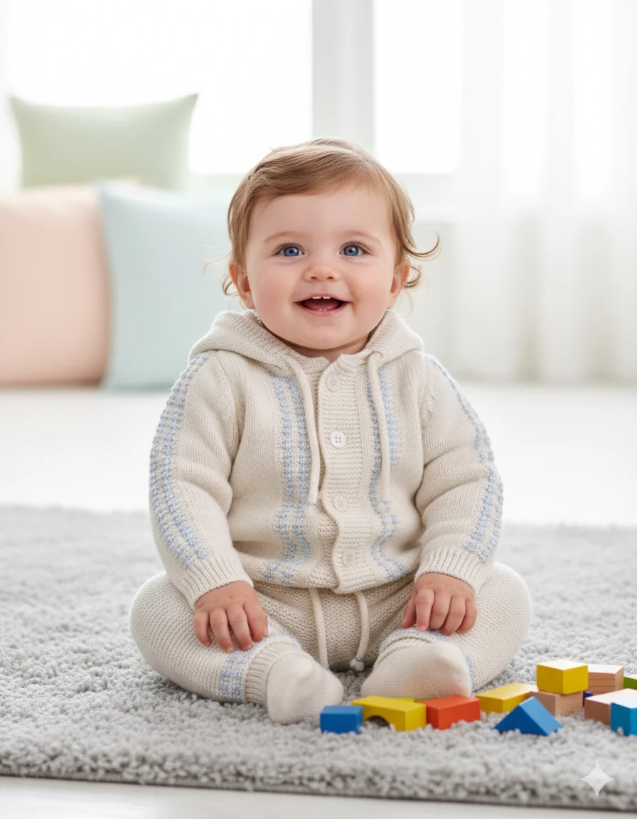Questo elegante set neonato รจ composto da tre capi coordinati in tonalitร delicate e raffinate: bianco e azzurro polvere. I tessuti morbidi e le lavorazioni a maglia rendono ogni pezzo confortevole, caldo e ideale per la pelle sensibile dei piรน piccoli. DETTAGLI DEL PRODOTTO Materiale: Lana merino 12%; Acrilico 75%; Elastane 13% Maglia 100% cotone […]