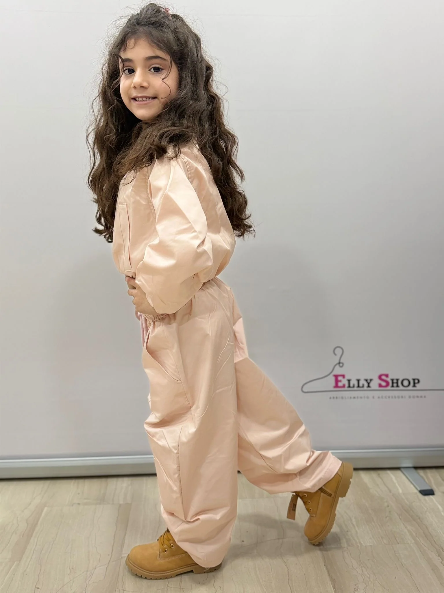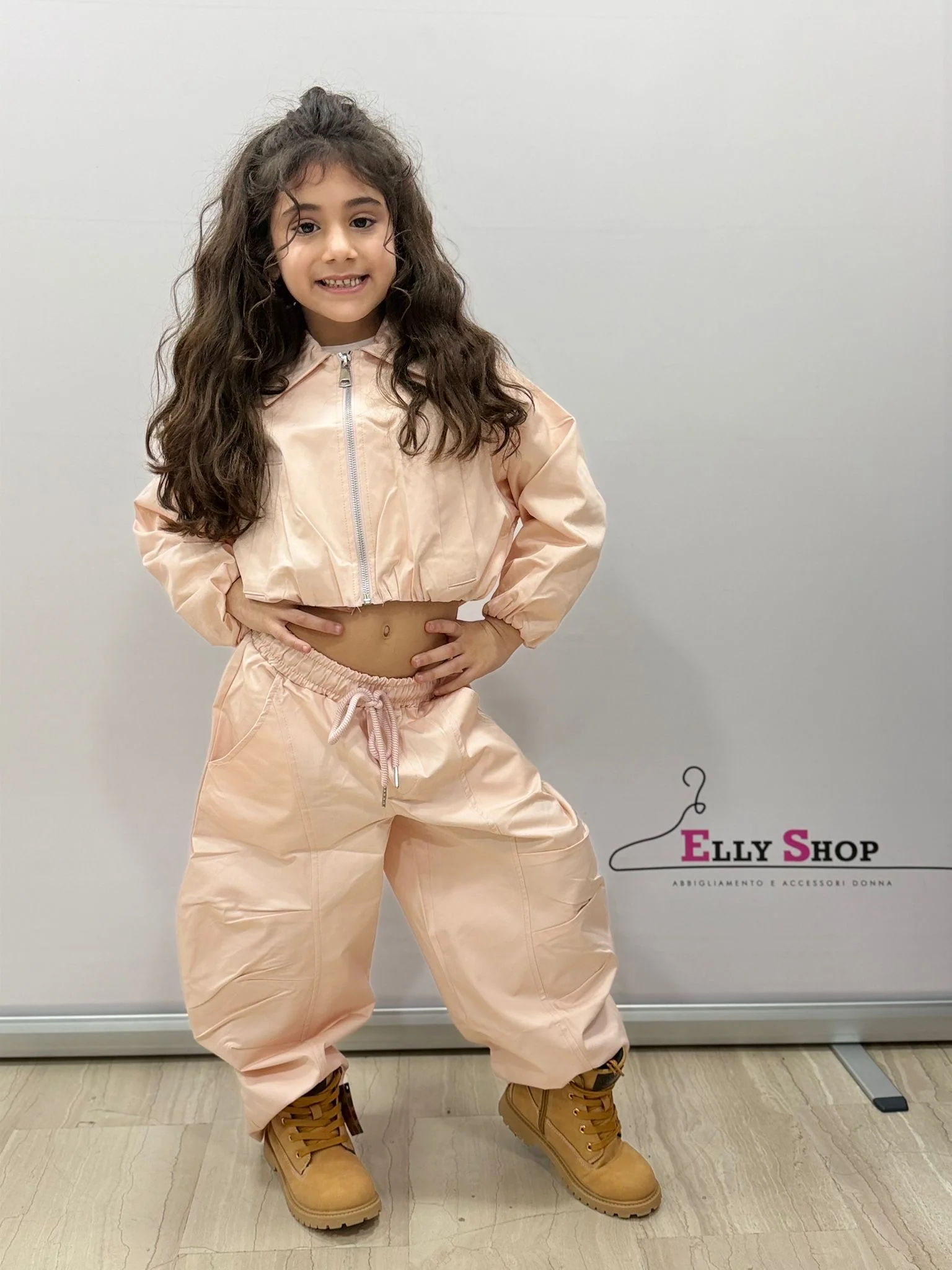 Completo due pezzi dal carattere moderno e grintoso, perfetto per le bambine che amano uno stile casual ma curato. Il design crop con giacca corta e pantalone ampio crea un look di tendenza, ideale per il tempo libero, passeggiate, scuola e occasioni informali. Il delicato colore cipria dona un tocco dolce ed elegante, facilmente abbinabile a sneakers o anfibi per outfit versatili e alla moda. La vestibilità comoda garantisce libertà di movimento e massimo comfort durante tutta la giornata.