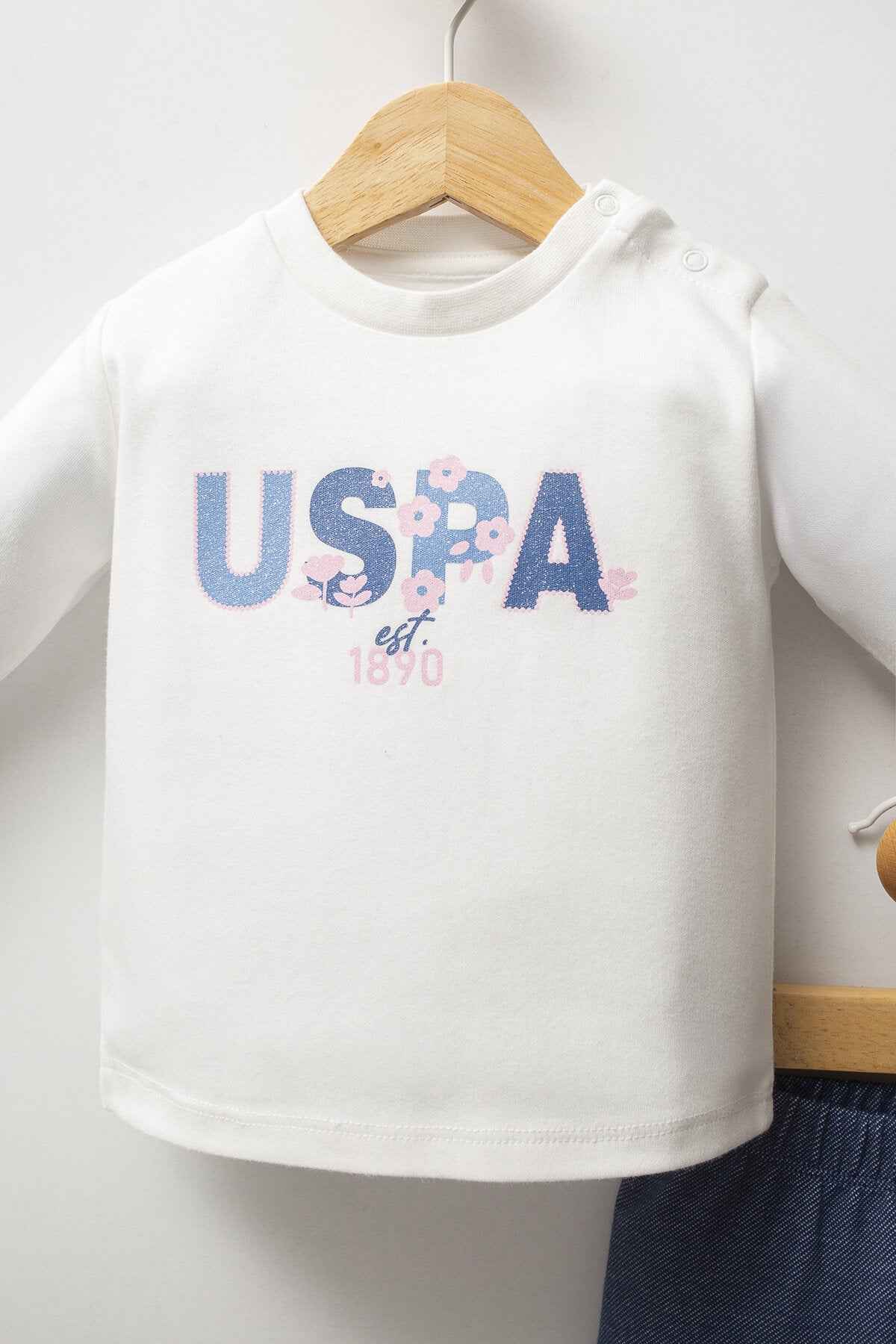 - Maglia a maniche lunghe bianca coordinata, perfetta da indossare sotto la felpa o da sola nelle mezze stagioni, con stampa delicata sul davanti.