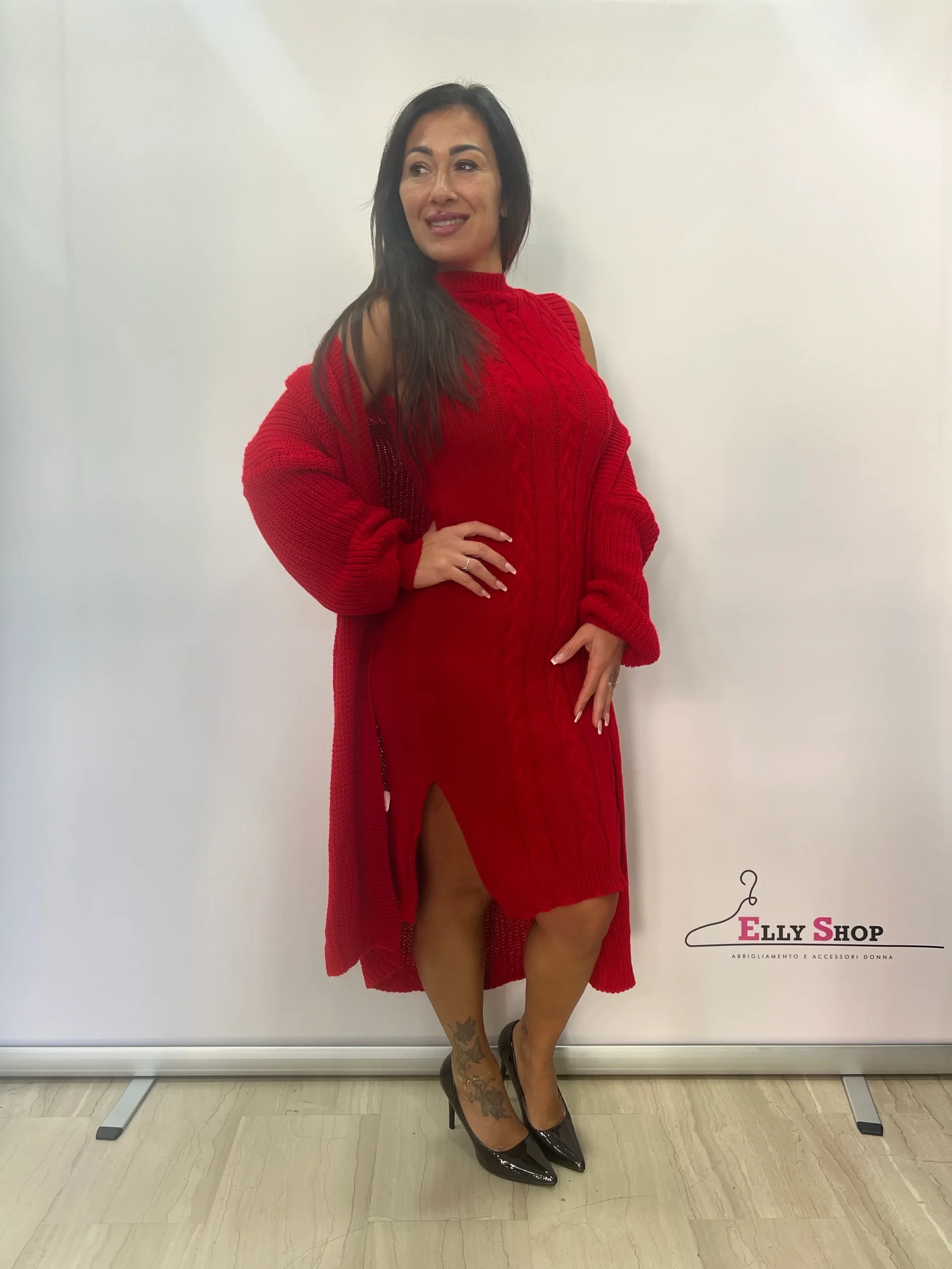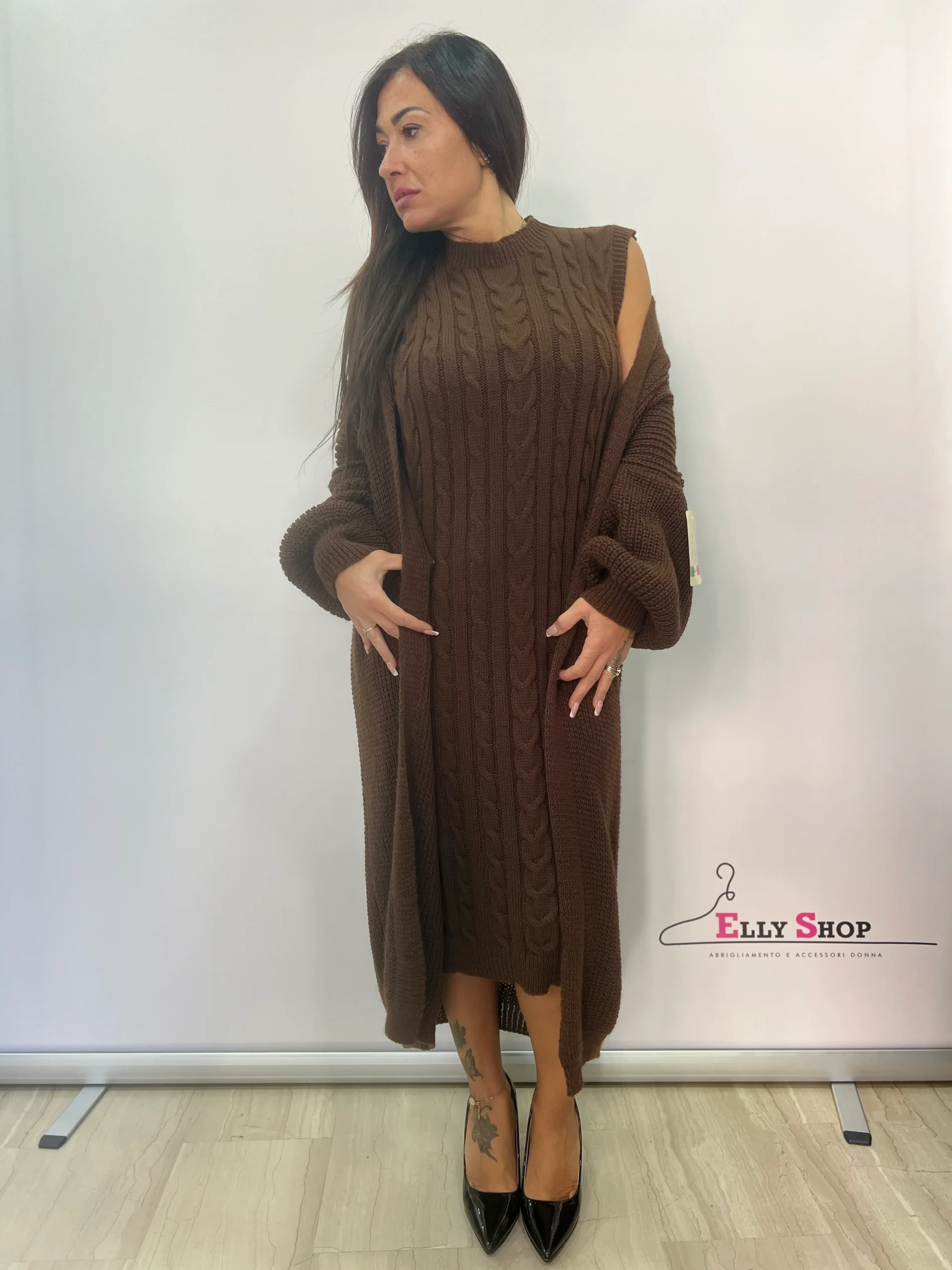 Tipo: Coordinato abito midi in maglia + maxi cardigan