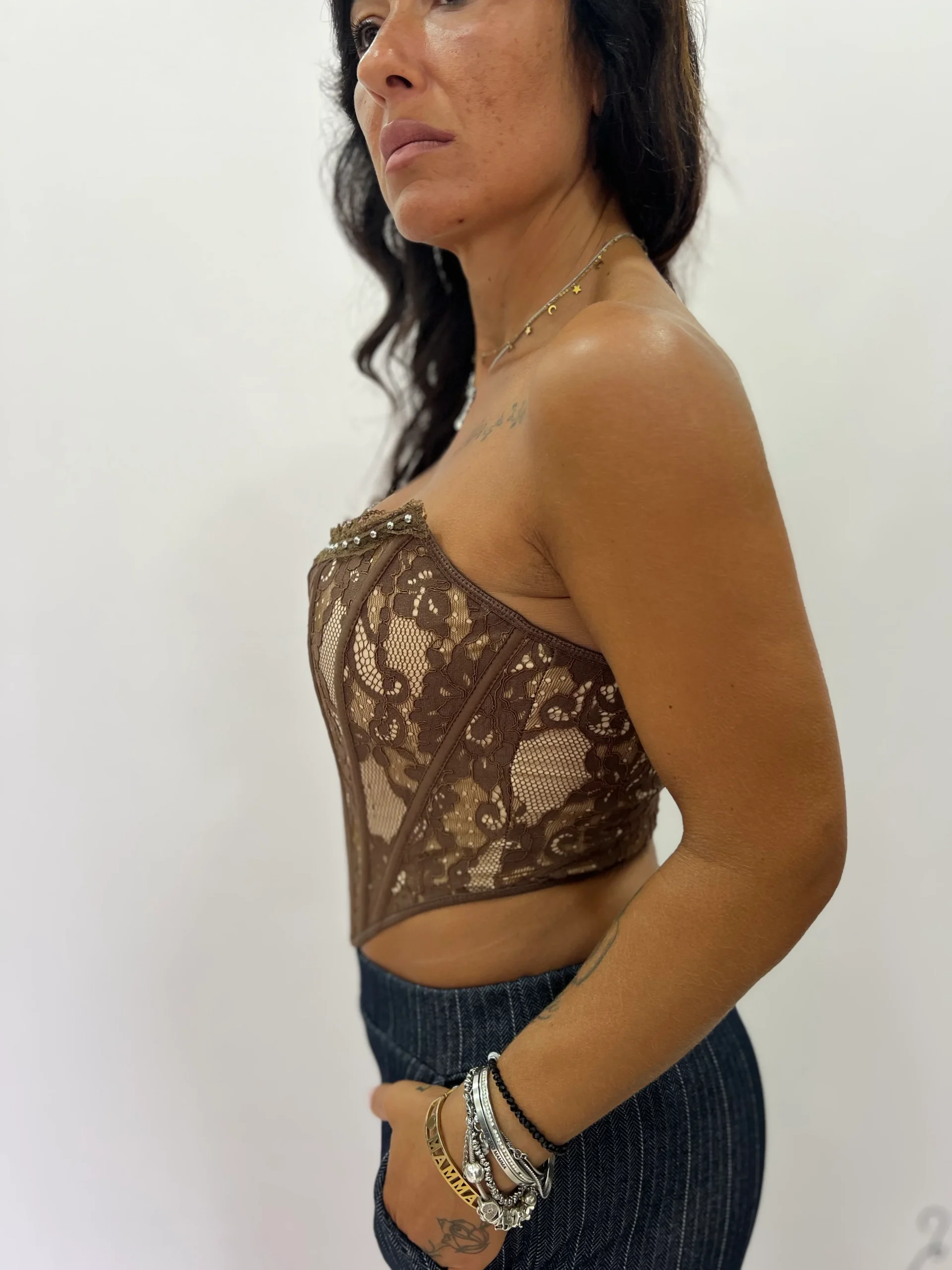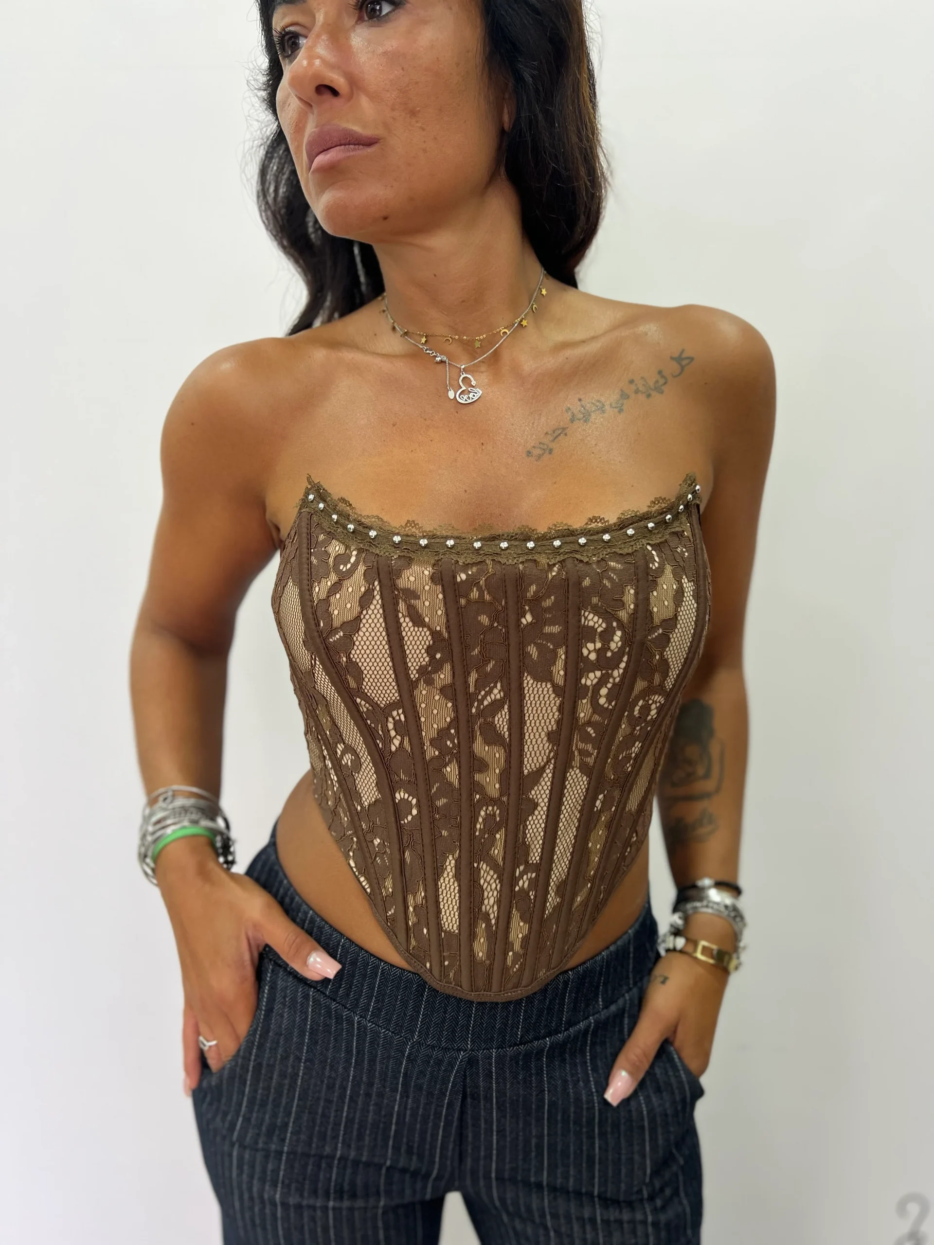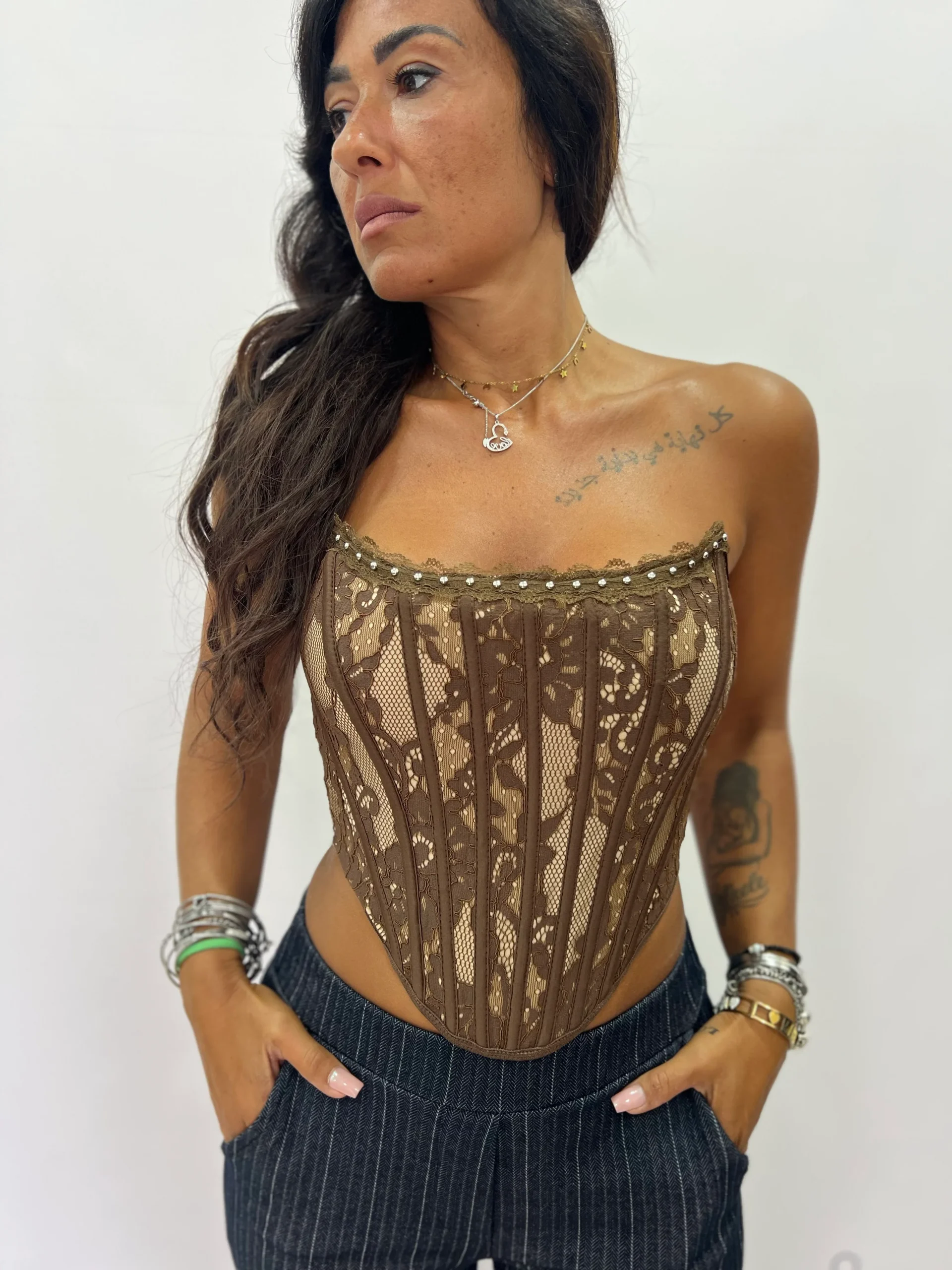 Corpetto merletto e perline