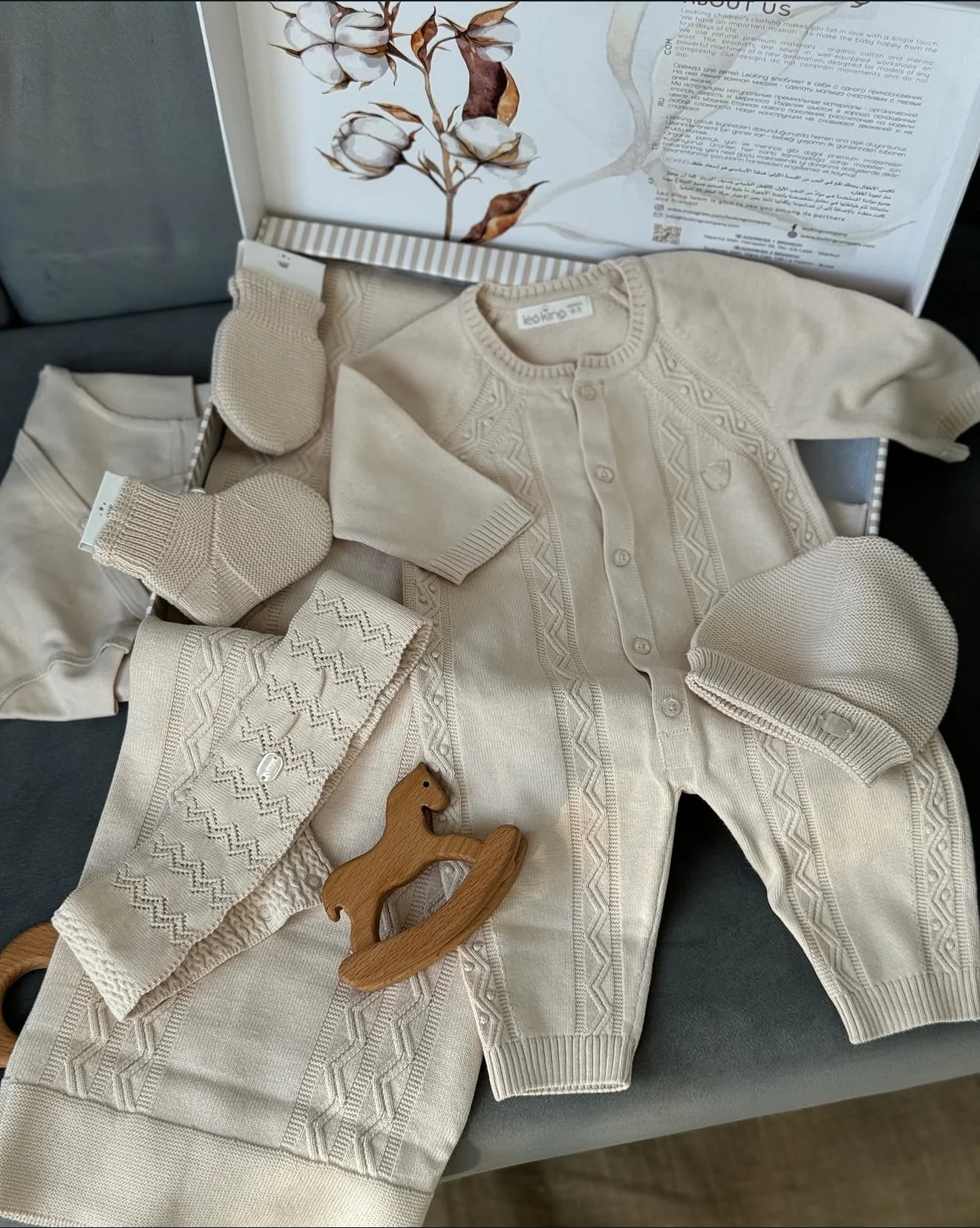 Inoltre, questo corredino offre anche una scatola box regalo, perfetta per rendere ancora piรน speciale il dono.