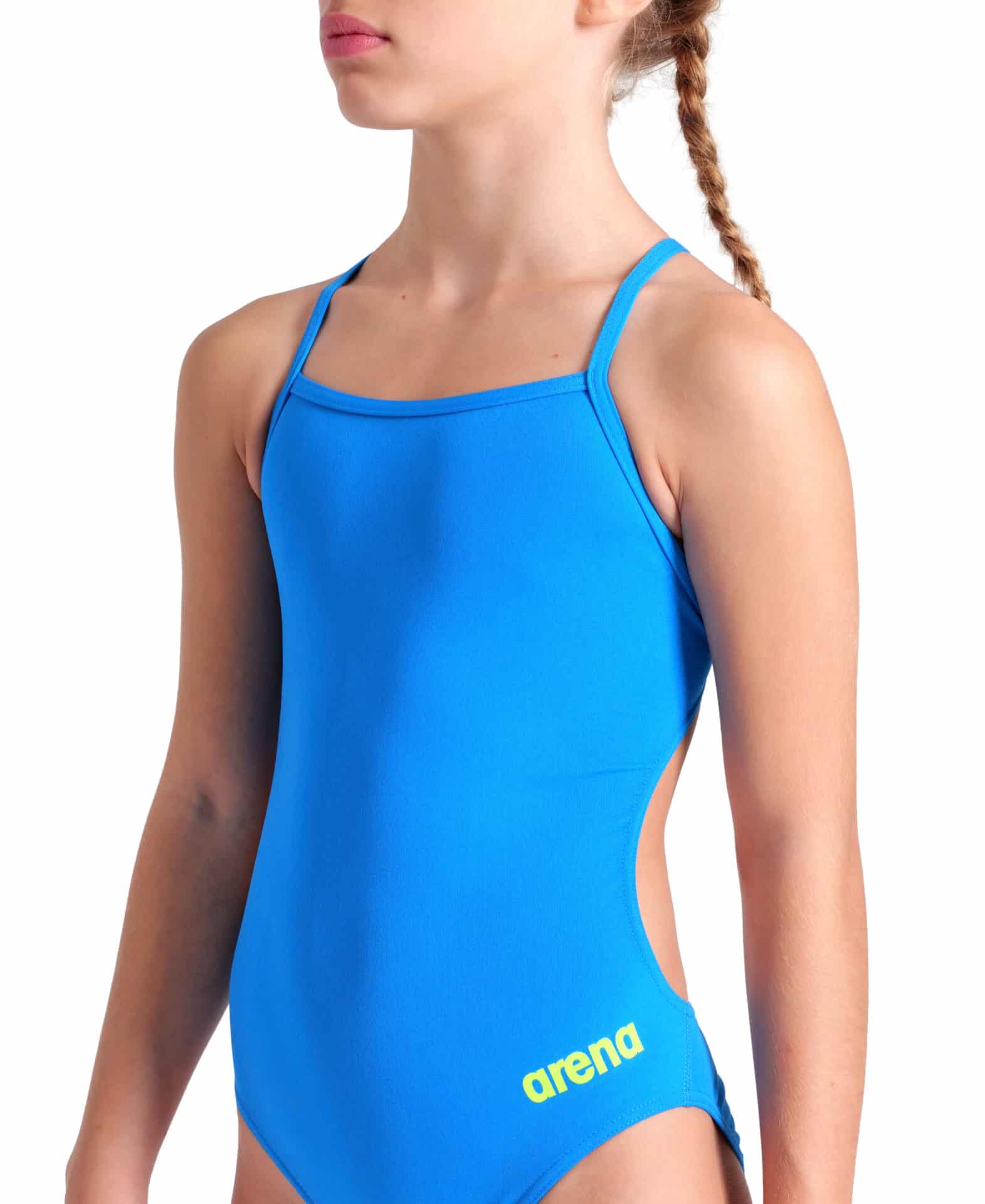 Arena crea costumi per le federazioni e i club di nuoto utilizzando materiali innovativi e design testati dagli atleti come il COSTUME bambina TEAM-CHALLENGE ARENA Blue River