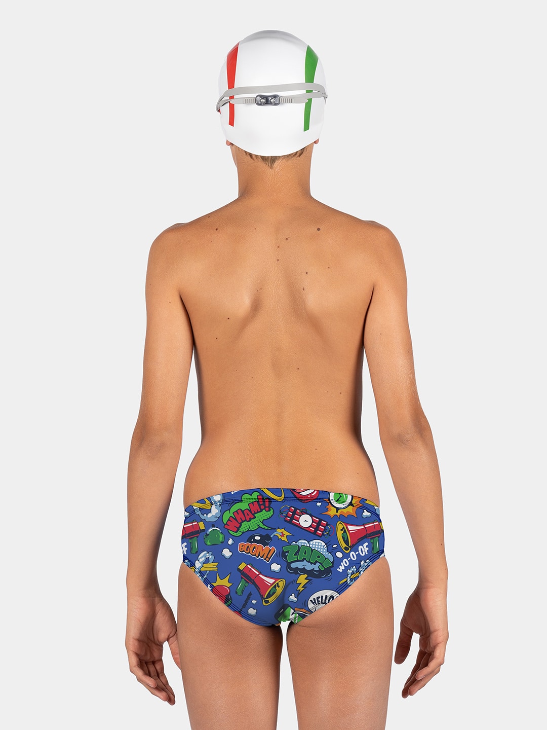 Darwin โ tessuto PBT 100% poliestere e per questo inattaccabile dal cloro. Garantisce una perfetta vestibilitร nel tempo e prestazioni tecniche ineguagliabili. Protegge dai raggi UV con fattore UPF 50+, ha unโottima traspirabilitร e asciuga rapidamente. 100% Made in Italy
