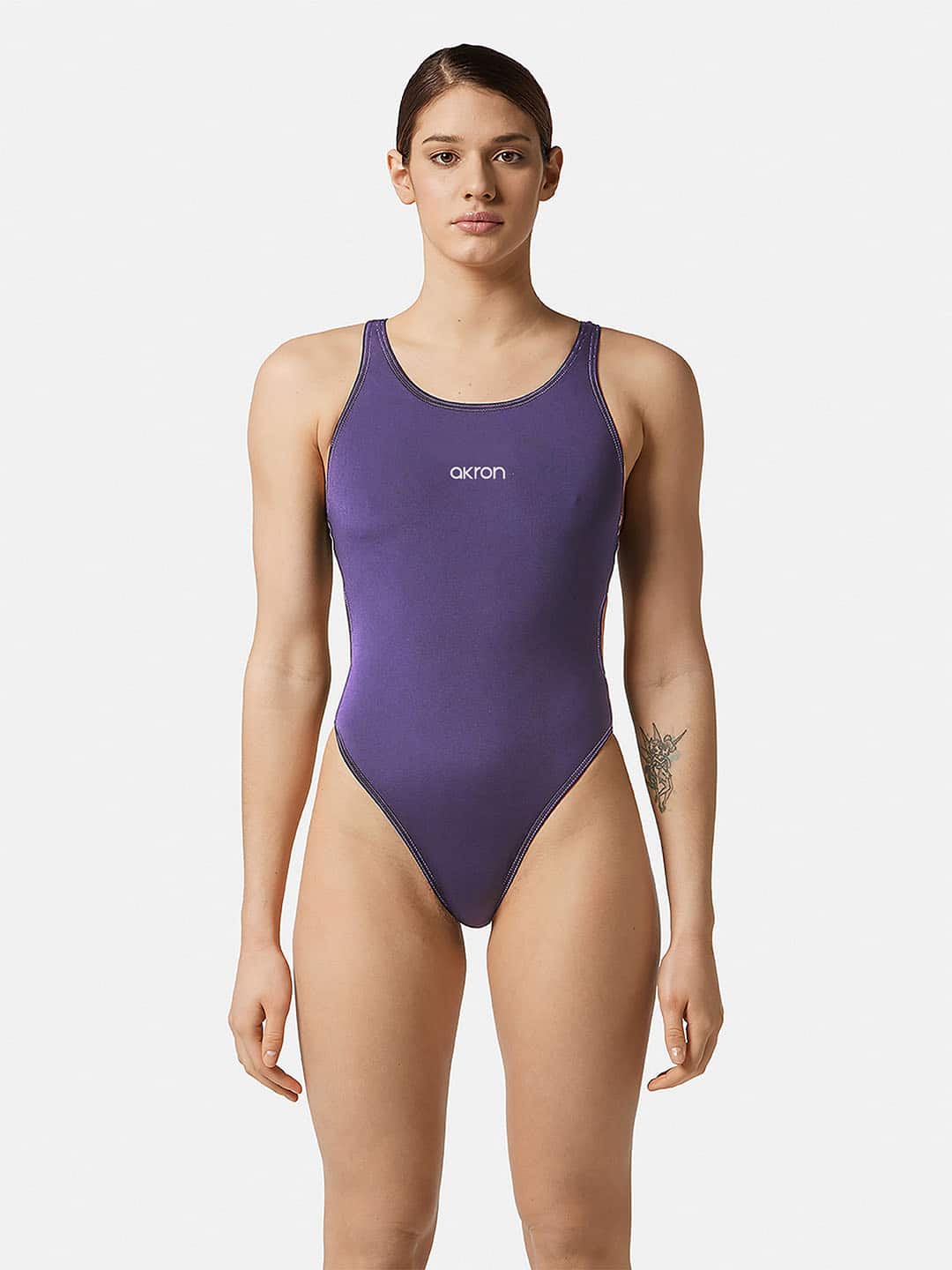 Costume intero donna Babbit Bicolor AKRON Penelope Fresh Blue tinta unita bicolore con logo a contrasto. Per l’allenamento in piscina, resistente al cloro, protezione UV eccellente, asciugatura rapida, eccellente traspirabilità.
