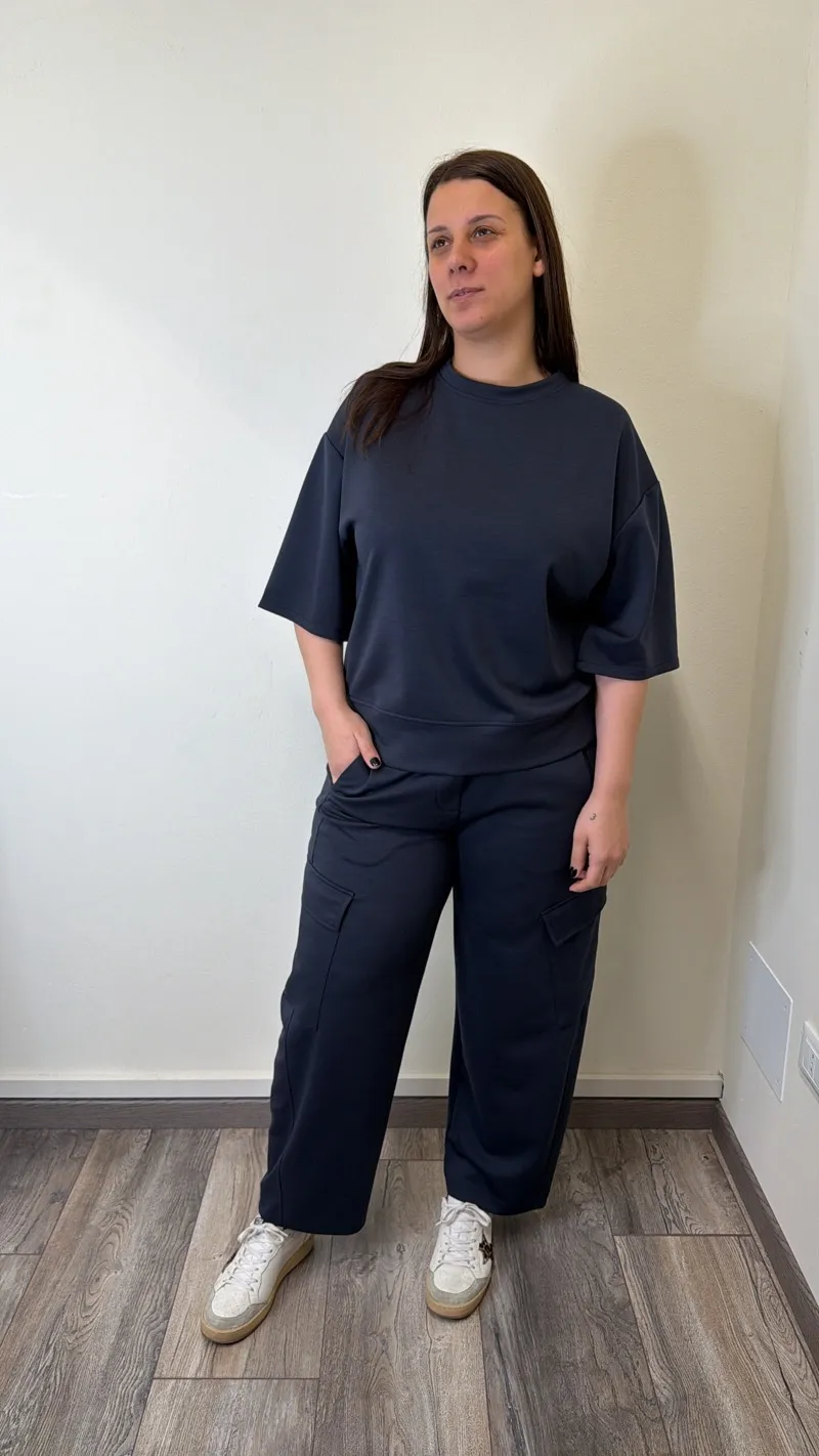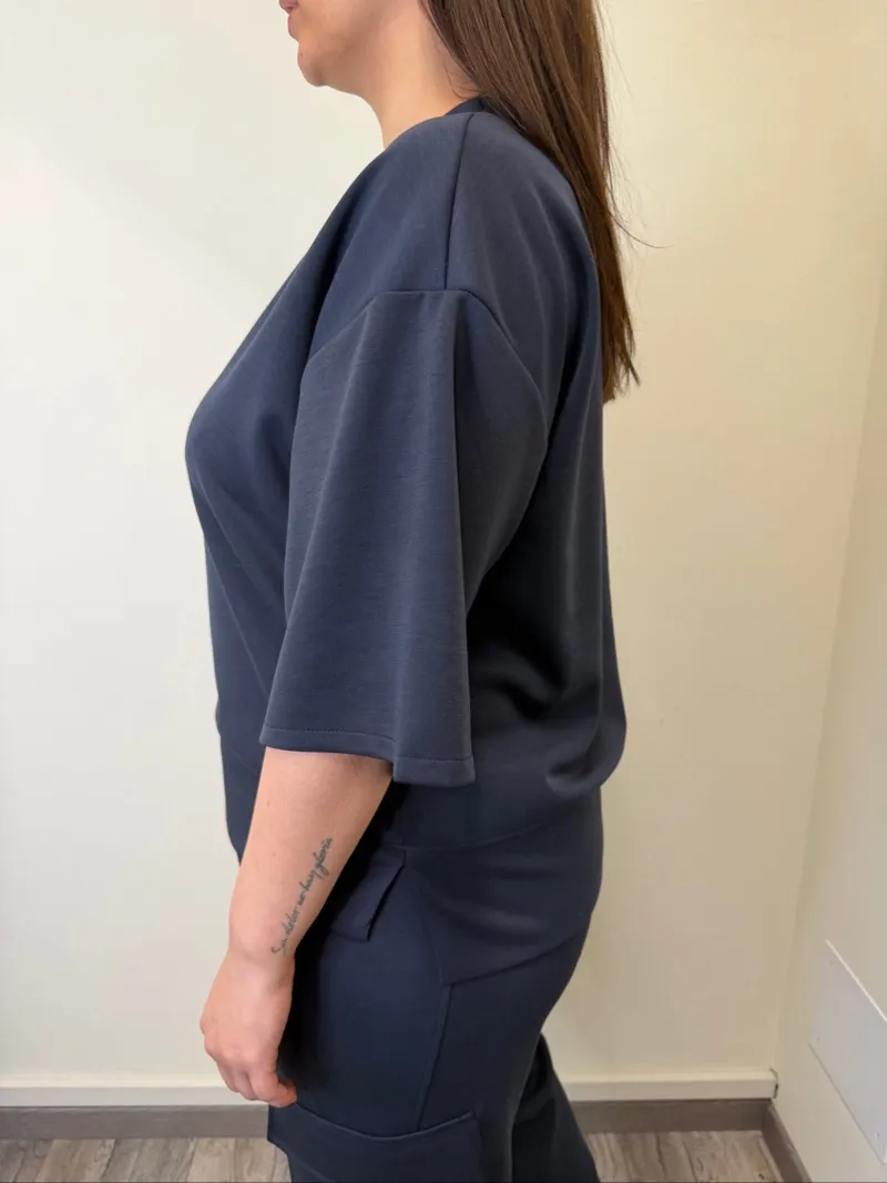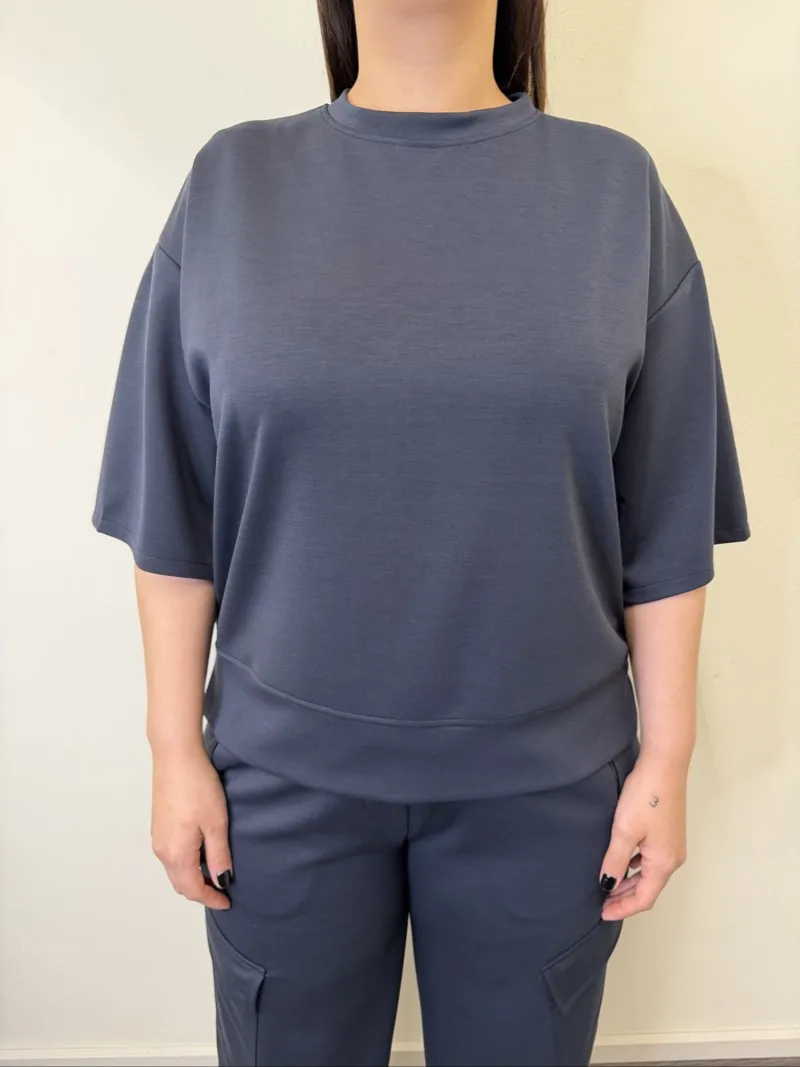maglia cubetto girocollo, mezza manica e spacchetti laterali