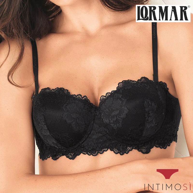 Vestibilità versatile, massimo comfort ed estrema sensualità sono le principali qualità del reggiseno a fascia modello balconcino della collezione Lormar. L’intero rivestimento in prezioso pizzo elasticizzato rappresenta il vero plus del capo di lingerie femminile. Straordinario e impeccabile, il design della fascia garantisce infinite possibilità di abbinamento grazie alle bretelline staccabili.
