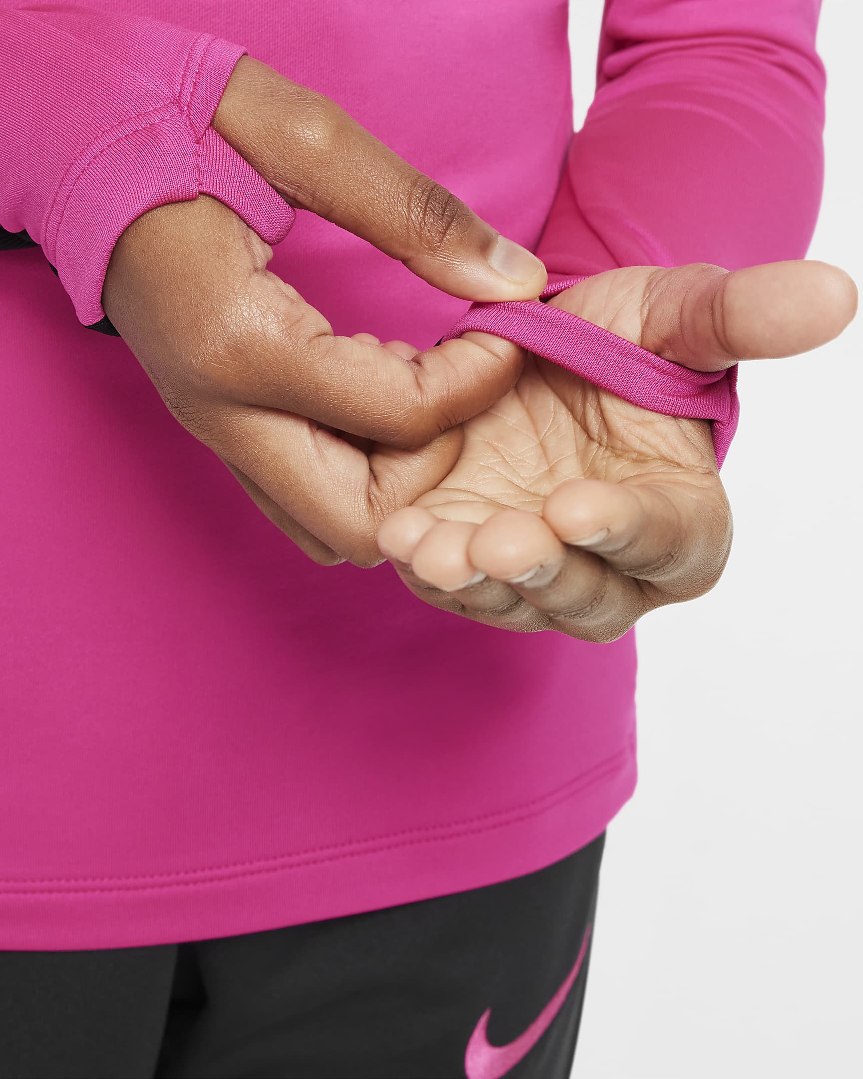 Gli occhielli per il pollice sui polsini aumentano la copertura e tengono a posto le maniche quando ti muovi.