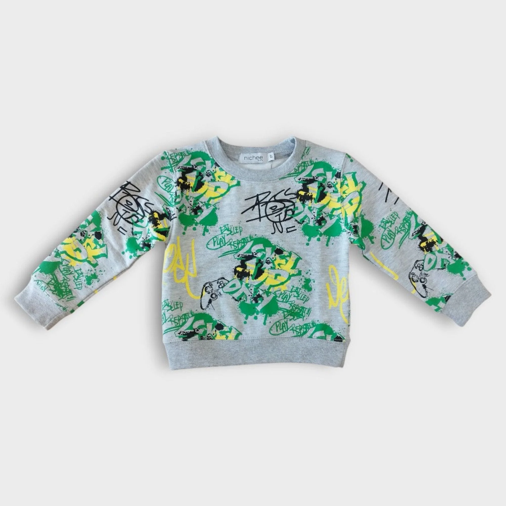 Felpa girocollo per neonati e bambini con stampa street art colorata che conquista al primo sguardo.