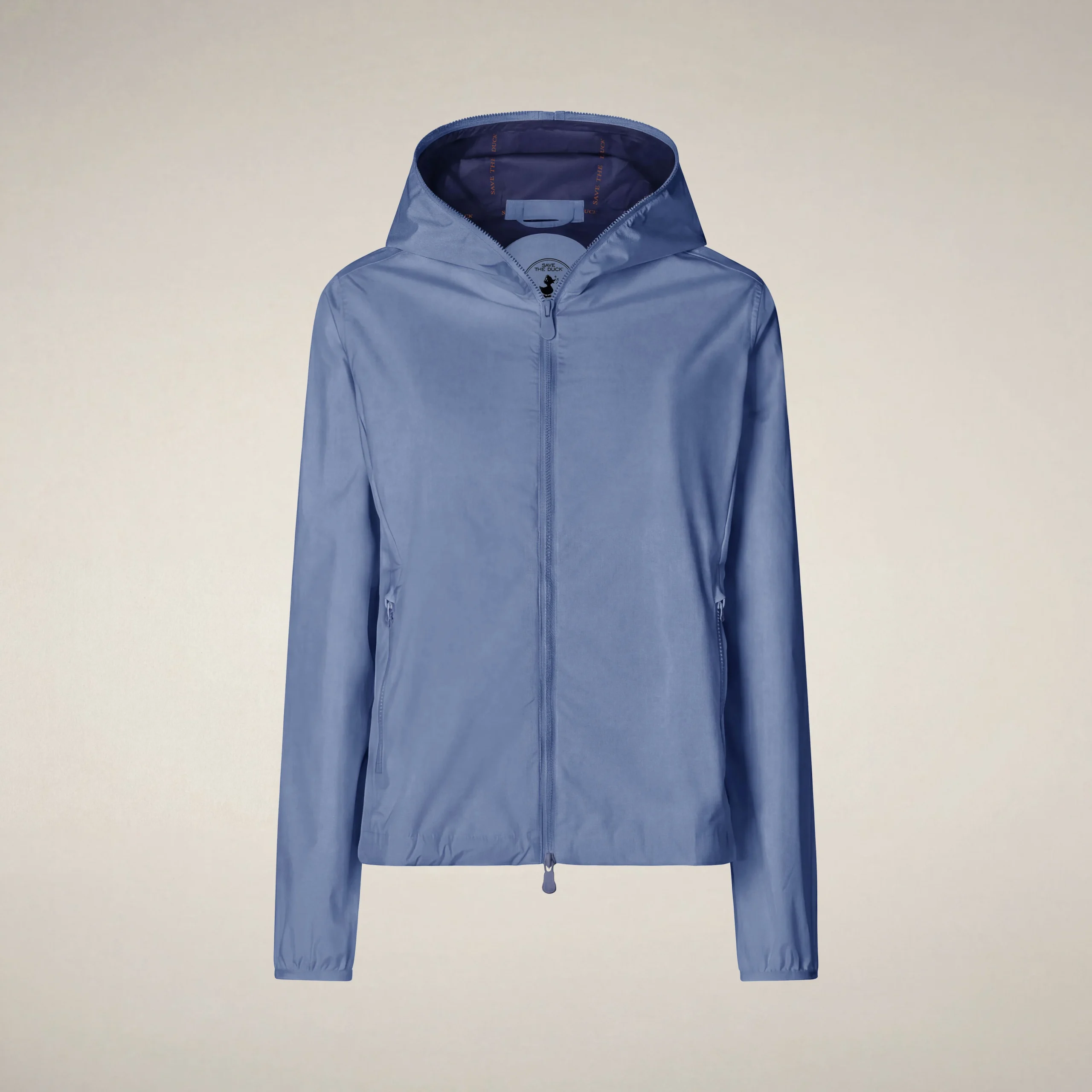 Affronta le giornate di vento e pioggia leggera con la giacca impermeabile da donna Stella. Realizzata in poliestere riciclato con una lamina interna a contrasto, è dotata di un cappuccio regolabile e di due pratiche tasche laterali con zip. I segni distintivi Save The Duck, come i tirazip personalizzati e il logo tondo sulla manica, completano il look.