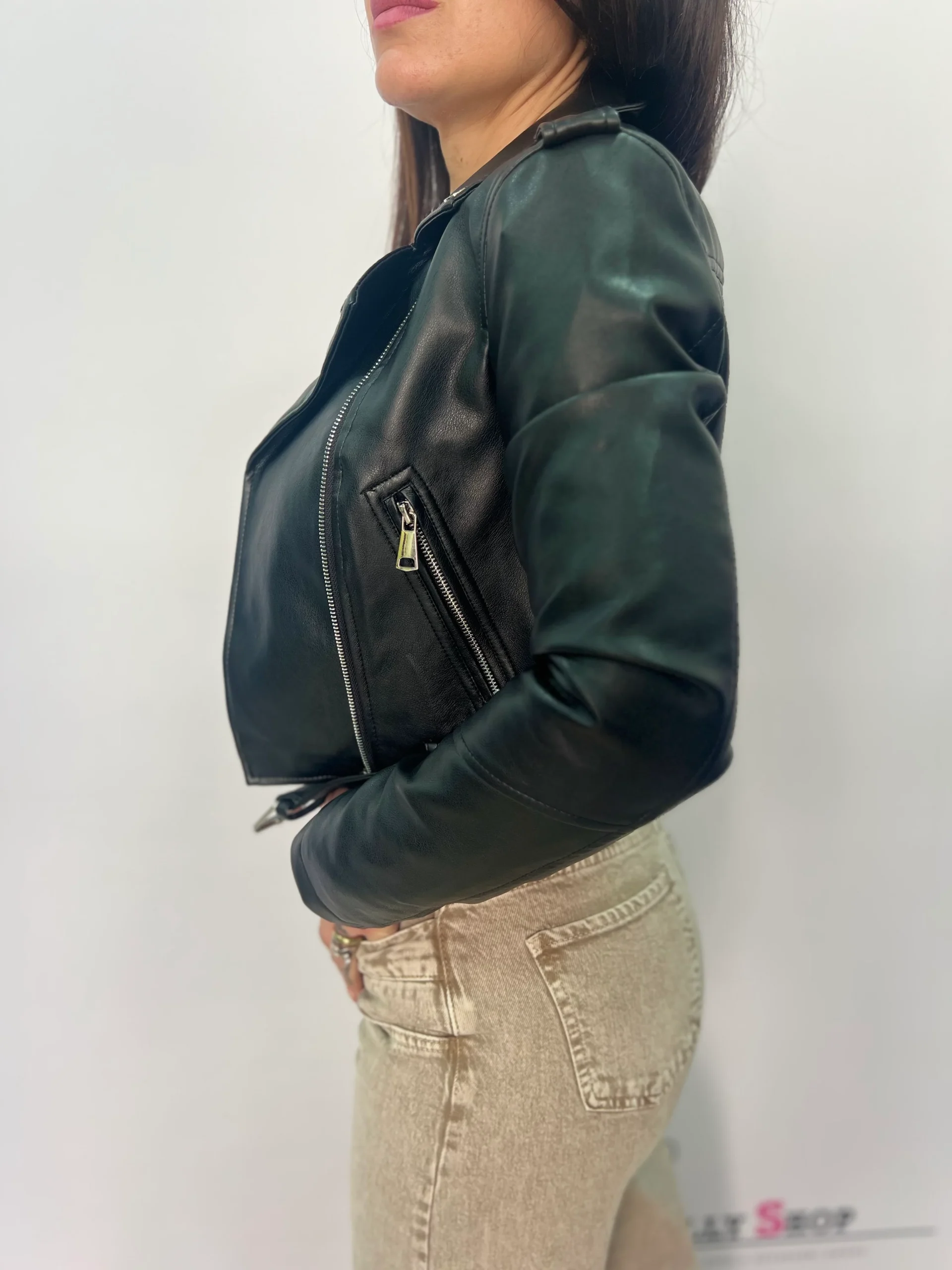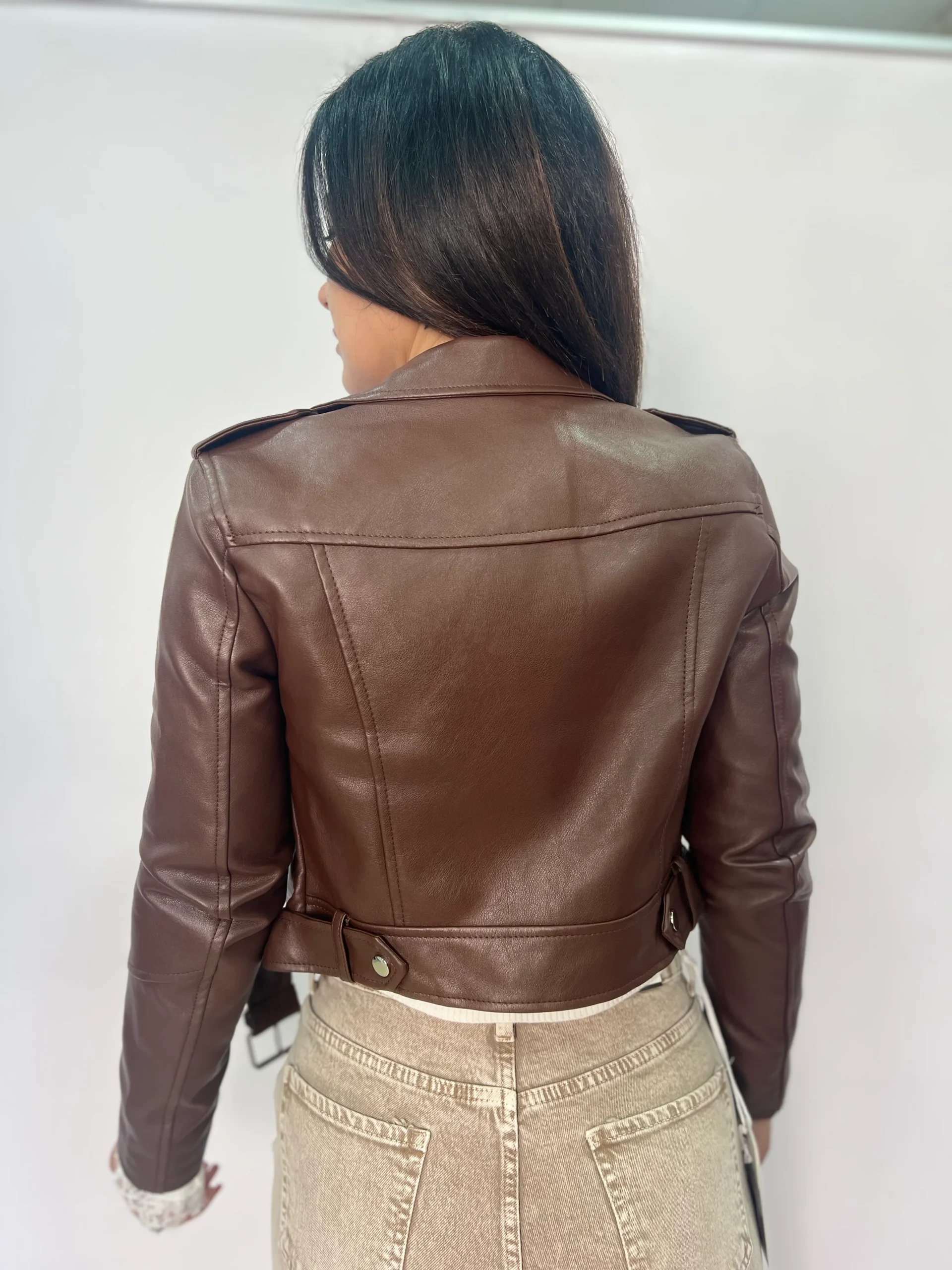 Giacca biker donna corta effetto pelle