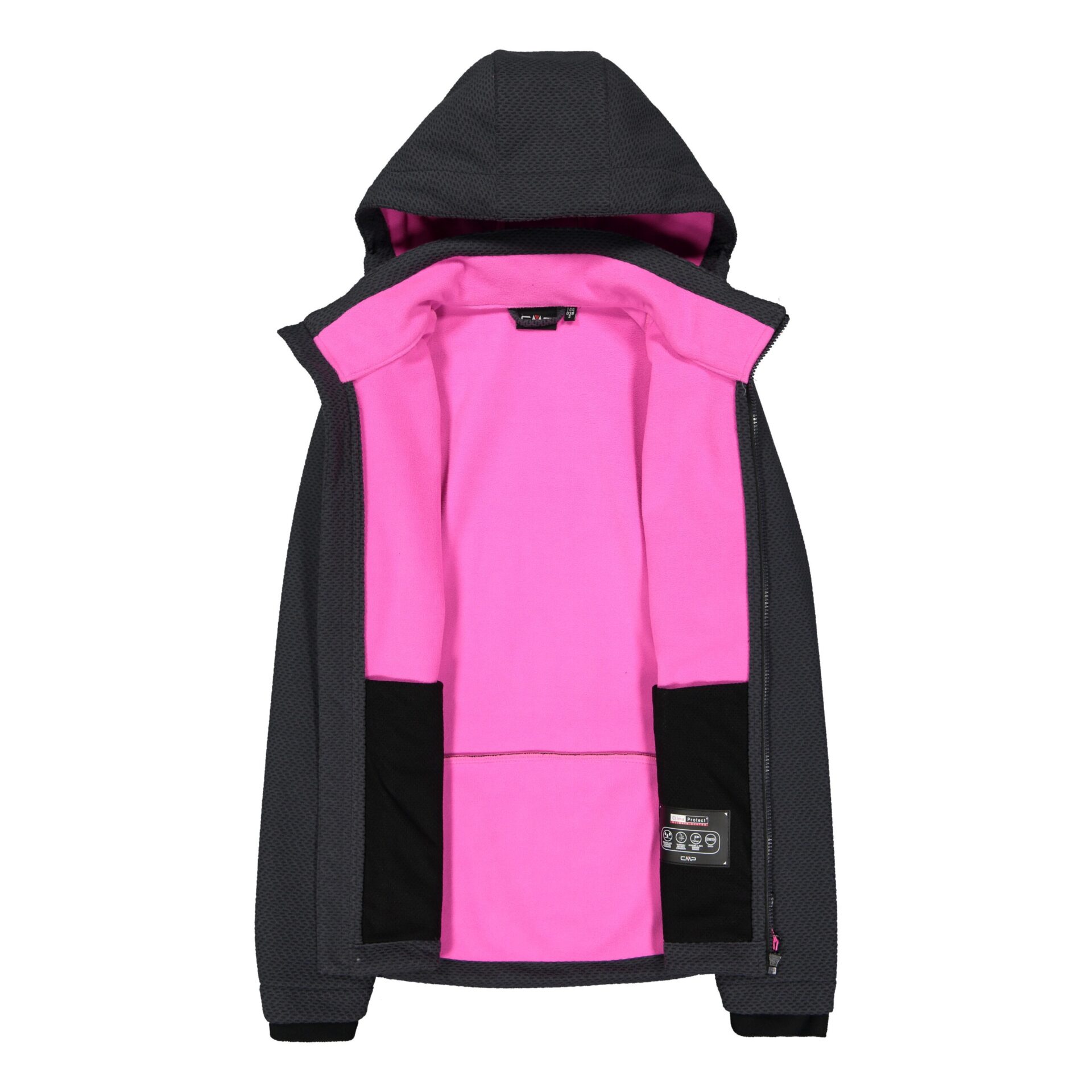 Una rivisitazione dell’iconica giacca in Softshell CMP, che si contraddistingue per la sua particolare lavorazione jacquard allover. Giacca donna in softshell jacquard CMP Un capo pensato per proteggerti dalle intemperie, grazie alla sua costruzione a tre livelli che abbina allo strato esterno una morbida e calda fodera in pile. Tra i tessuti è stata applicato il laminato Clima Protect, che impedisce all’acqua di penetrare senza compromettere la traspirabilità (Waterproof 7.000, MVP 3.000). È dotata di cappuccio fisso, zip frontale con patta antivento interna e garage antisfregamento, interno in contrasto colore, rivestimento del collo in pile, due tasche laterali con zip e coulisse sul fondo per regolare l’aderenza.