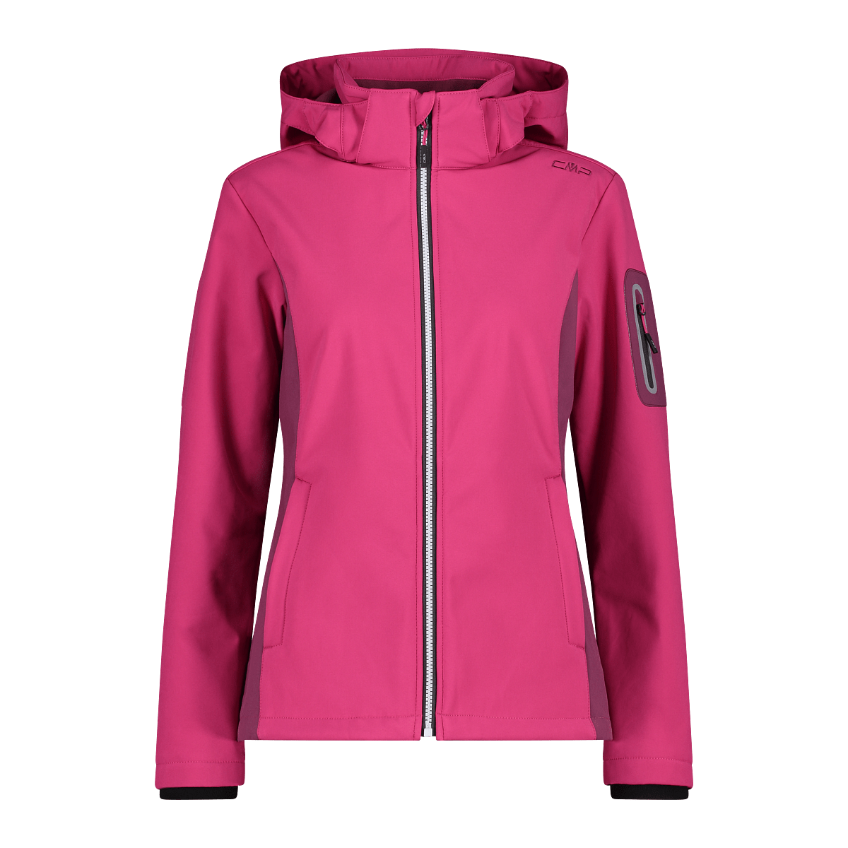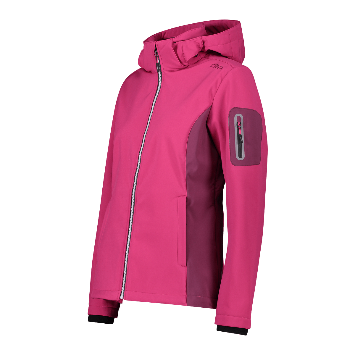 Giacca donna Softshell CMP – Un’icona delle collezioni outdoor CMP, in grado di proteggerti in montagna e in città. Al tessuto esterno in softshell è stato accoppiato un morbido e caldo strato in pile che dona una piacevole sensazione di comfort a contatto con la pelle. In mezzo, la membrana Clima Protect assicura impermeabilità e traspirabilità (Waterproof 7.000, MVP 1.000). È dotato di cappuccio staccabile a scomparsa e di numerosi dettagli come la tasca termoapplicata sulla manica, le due tasche laterali con interno in rete, chiusura a zip e doppia coulisse sul fondo.