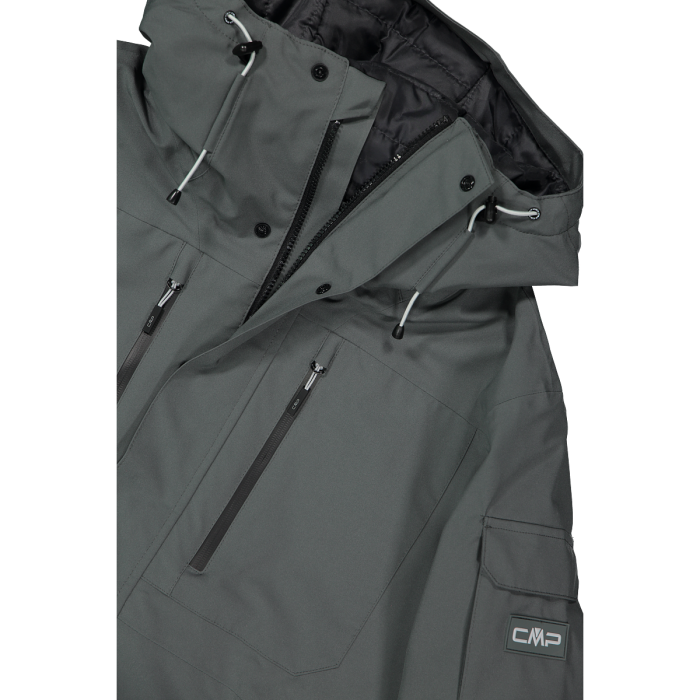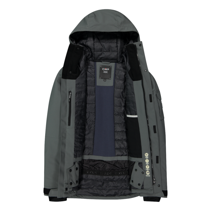 Giacca Uomo in mechanical stretch CMP Grey loose fit per lo sci e lo snowboard Giacca da sci in mechanical stretch con cappuccio fisso imbottita con Feel Warm Fat, una speciale fibra sintetica in grado di mantenere il corpo caldo anche in condizioni di umiditร . La membrana Clima Protect, insieme al trattamento idrorepellente, protegge da neve e acqua mantenendo alta la traspirabilitร . Il capo รจ completato da fondo regolabile, polsini in lycra con apertura per il pollice, zip frontale con patta antivento e anti sfregamento, due tasche laterali con zip, ghetta interna staccabile, skipass pocket sulla manica. Attivitร SKI Composizione…