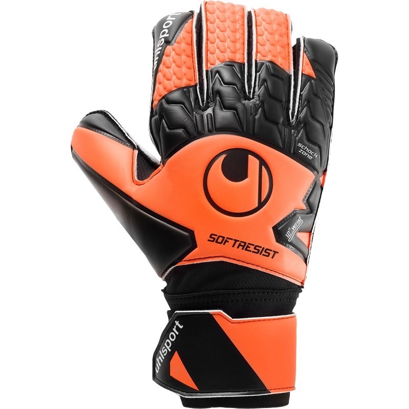 I GUANTO portiere SOFT RESIST UHLSPORT sono concepiti per terreni artificiali e naturali compatti. Il palmo a pezzo unico in lattice resistente all’abrasione è collegato al dorso tramite soffietti che permettono la circolazione dell’aria all’interno. Il taglio è classico e il dorso è dotato di una Shockzone con inserti in rilievo per migliori respinte.