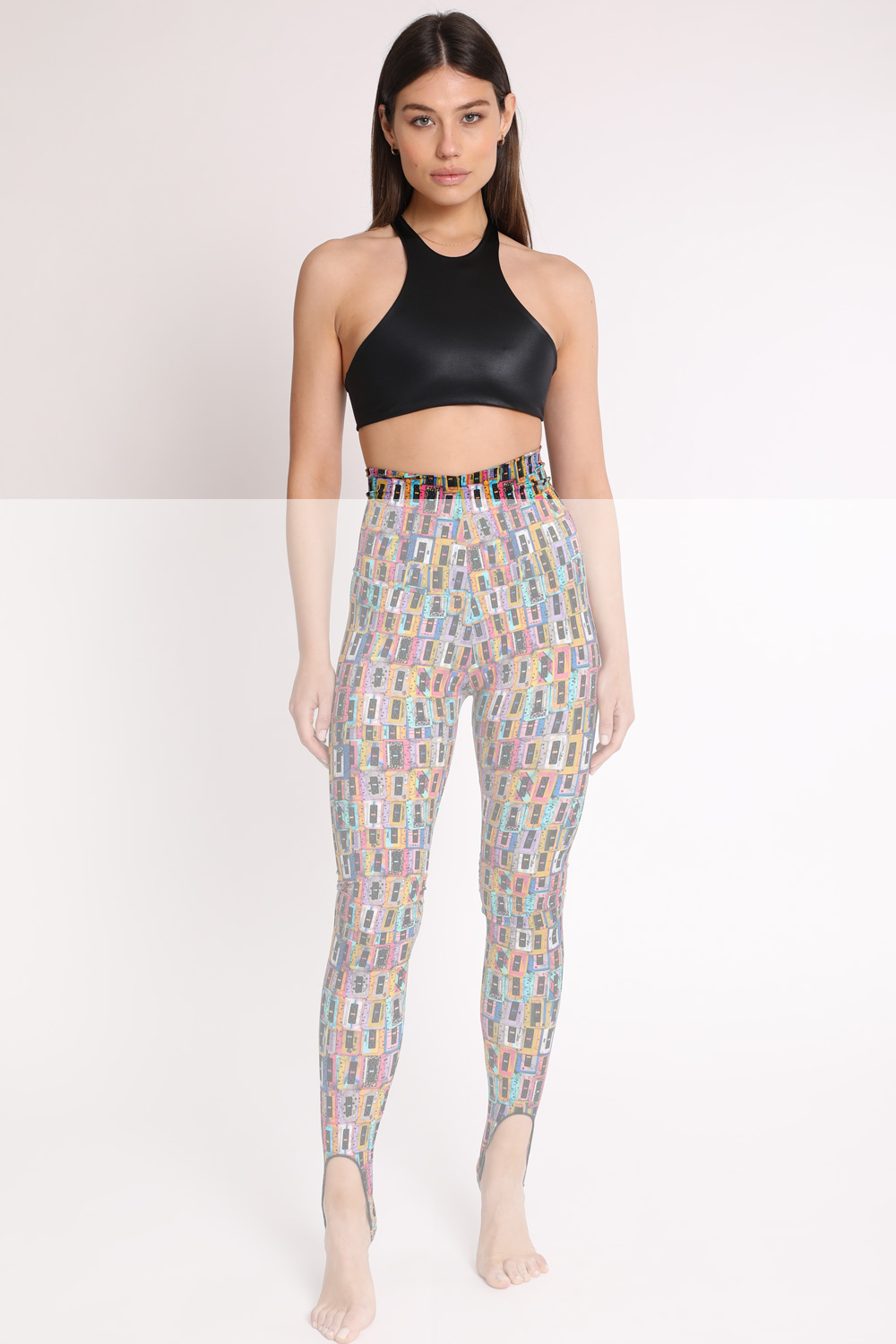 Halter neck top, fully lined with Lycra for optimal support. The fabric is silky, high-gloss and compact.