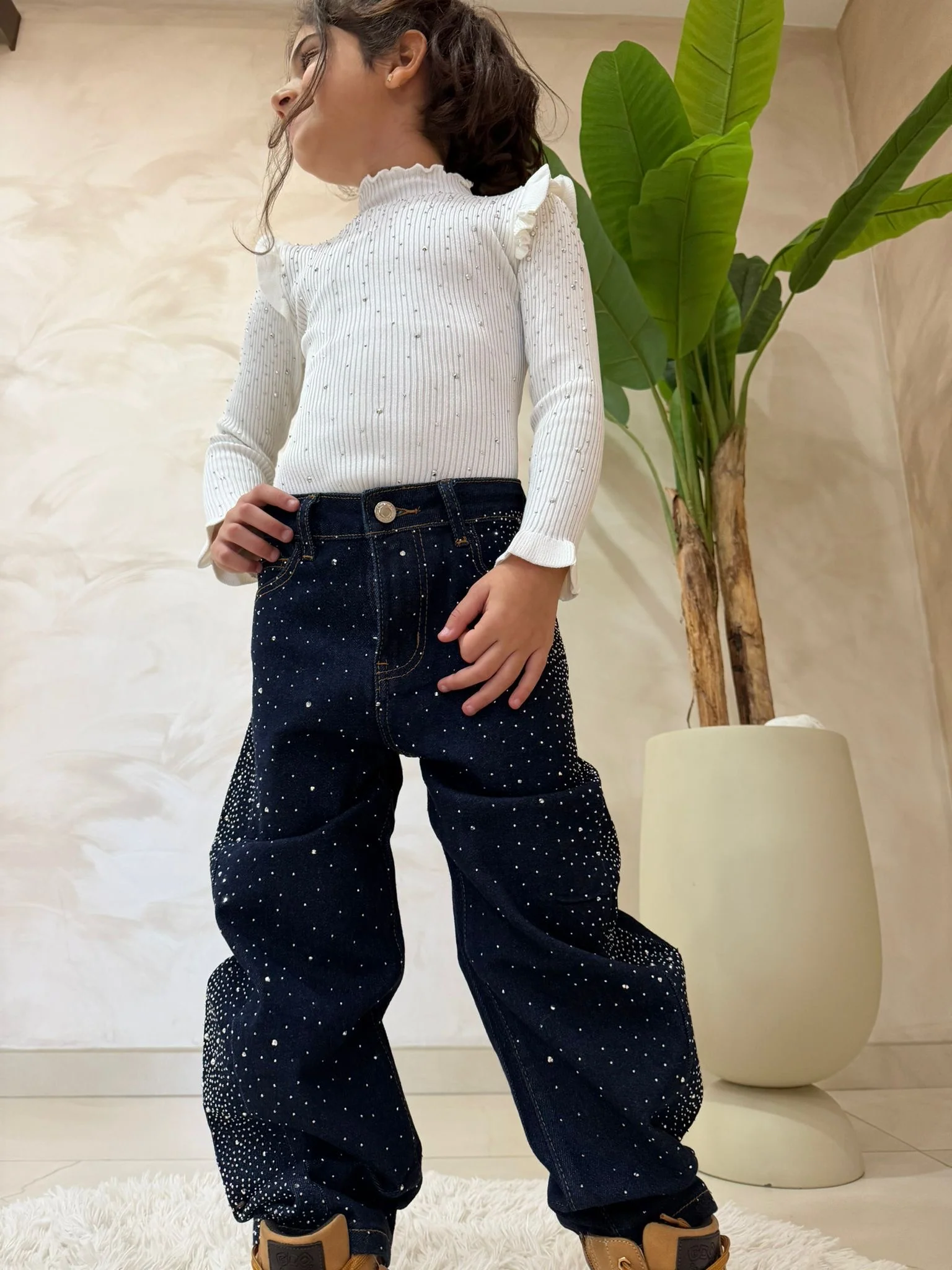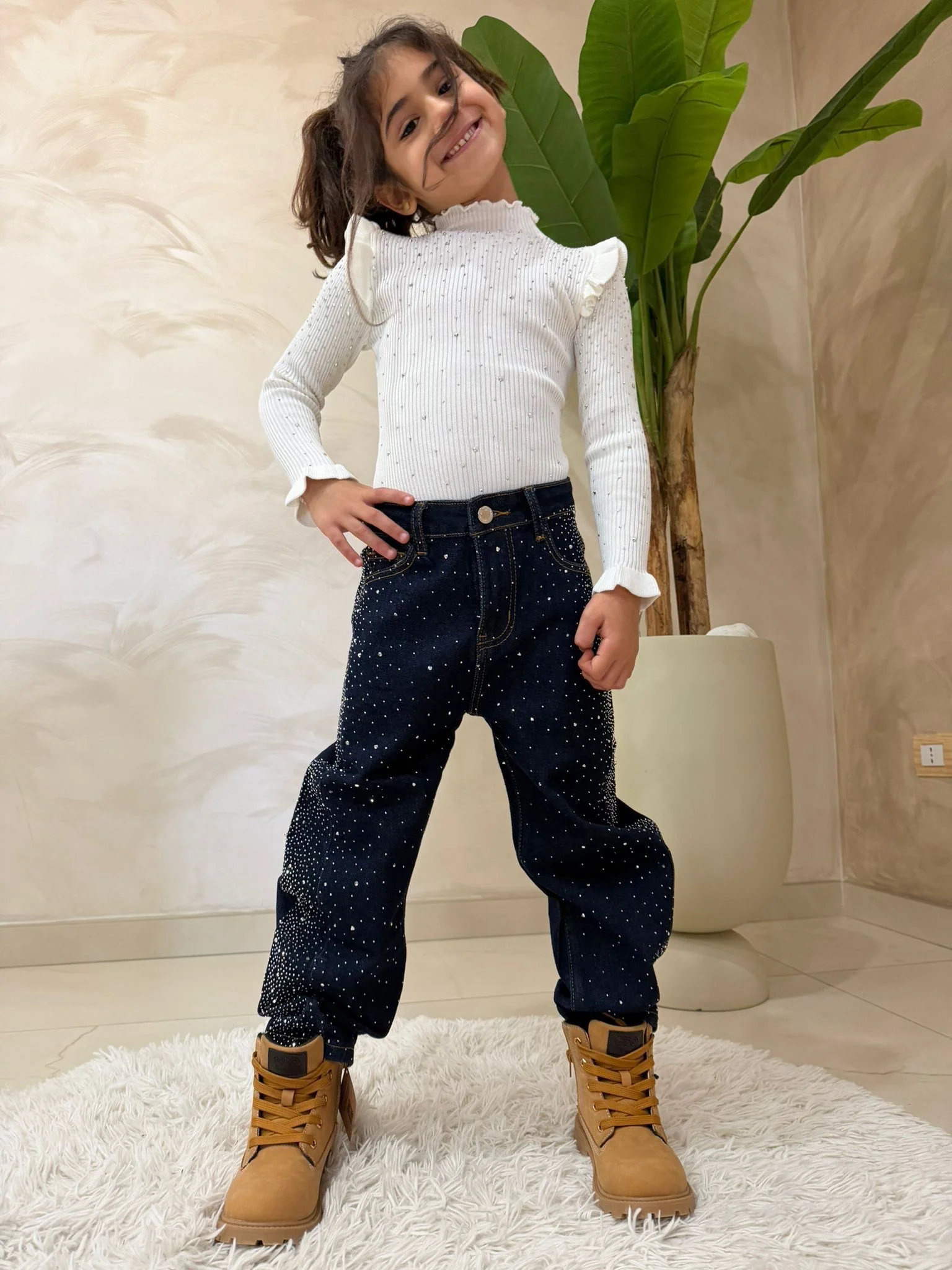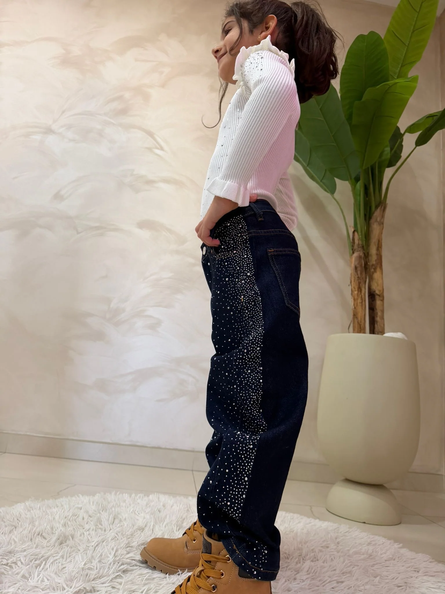 Jeans dal look contemporaneo e super brillante, perfetti per outfit trendy e alla moda. Il design a gamba morbida assicura comfort durante tutta la giornata, mentre la ricca applicazione di strass su entrambi i lati dona un effetto luminoso e originale. Versatili e facili da abbinare, questi jeans sono ideali sia per il tempo libero che per occasioni in cui si vuole sfoggiare un tocco speciale. ART. 8549