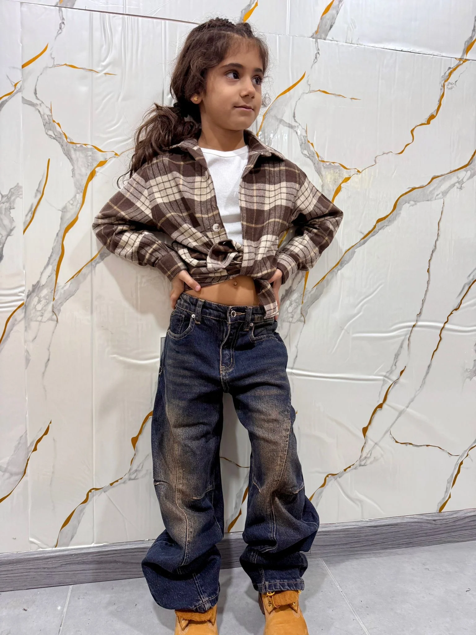 Camicia a quadri bambina in flanella — overshirt casual inverno