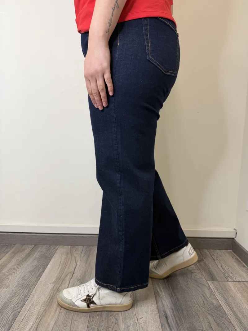 Jeans gamba dritta con elastico nel retro- linea curvy La modella è alta 170cm e veste la taglia I.