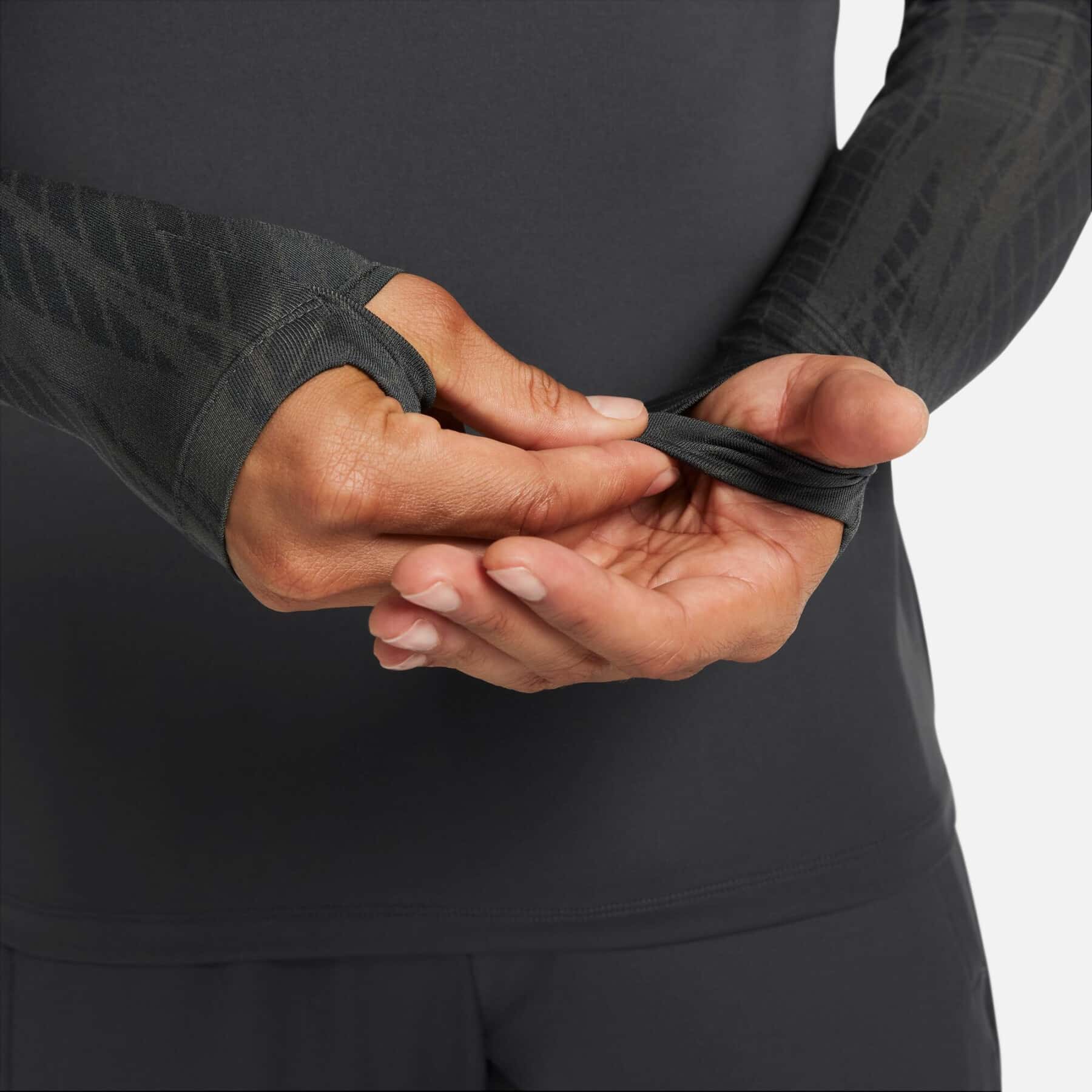Gli occhielli per il pollice sui polsini aumentano la copertura e tengono a posto le maniche quando ti muovi.