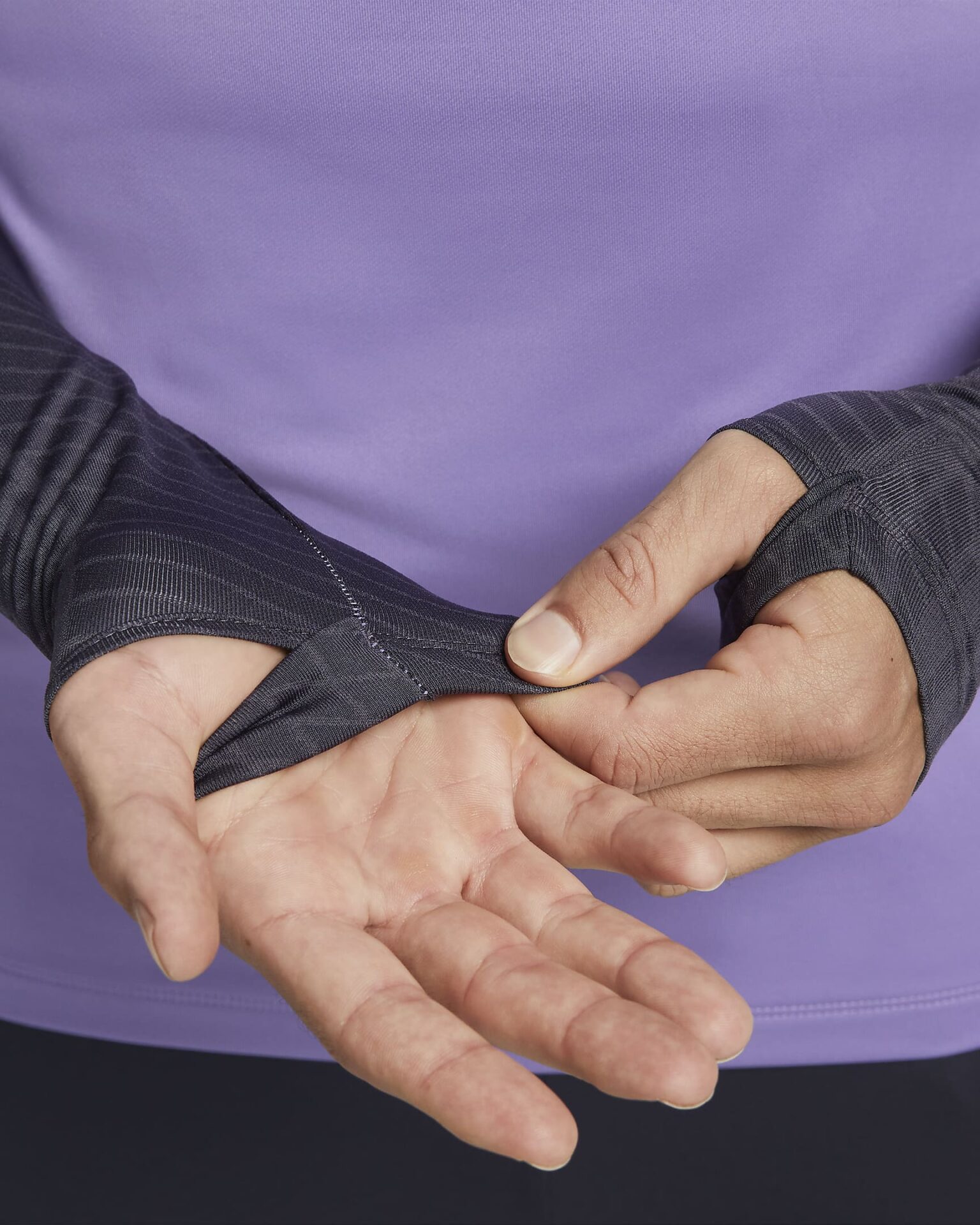 Gli occhielli per il pollice sui polsini aumentano la copertura e tengono a posto le maniche quando ti muovi.