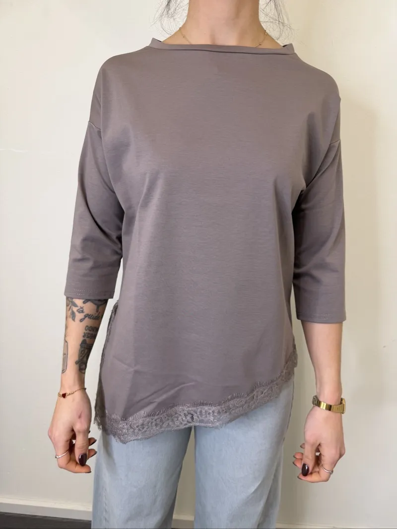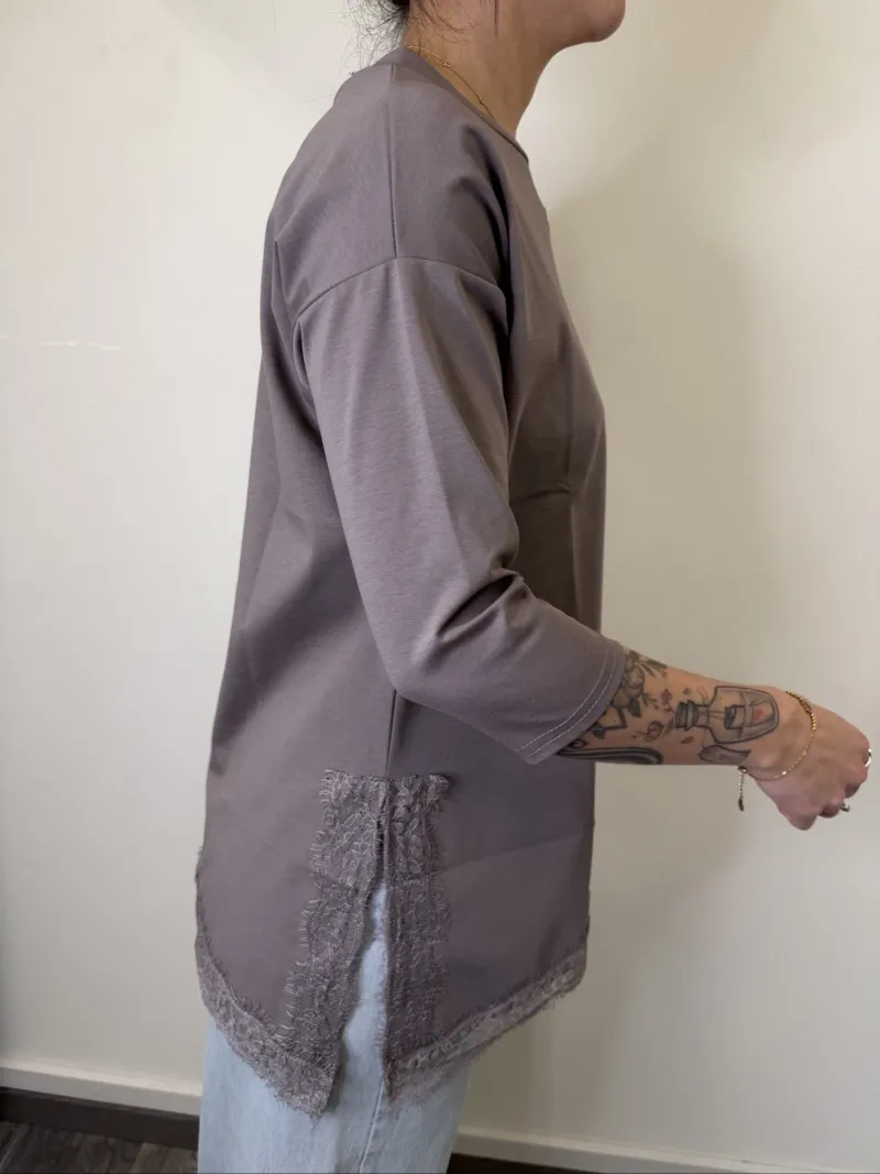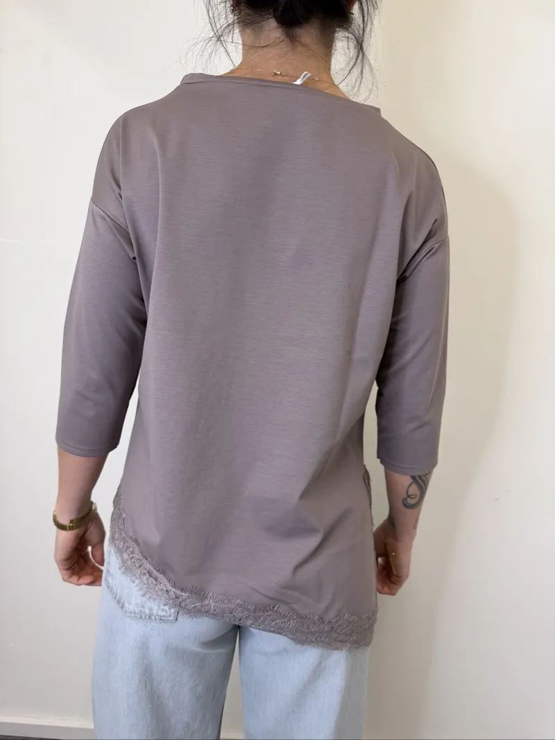 MAGLIA ASIMMETRICA CON PIZZO FANGO SUSYMIX